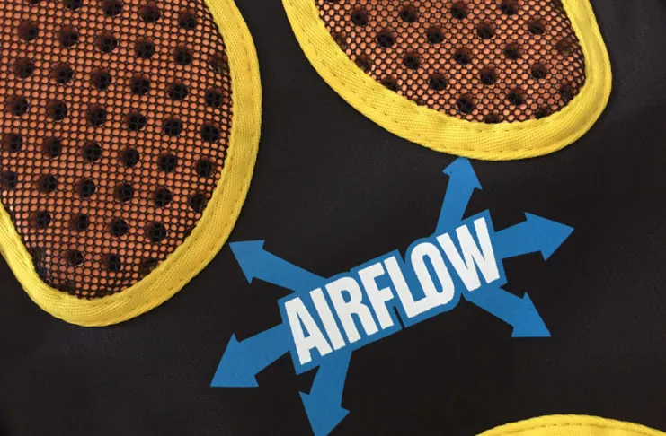 Il tessuto, come dicevamo, è molto leggero ma allo stesso tempo il produttore assicura che resiste agli strappi ed è idrorepellente, potendo così resistere ad eventuali schizzi d’acqua o piccoli scrosci di pioggia. Inoltre le zone visibili in grigio sono catarifrangenti, garantendo così una buona visibilità del ciclista anche al buio nel caso in cui venga illuminato dai fari di una macchina che lo precede. Pratiche e comode, infine, alcune fascette elastiche che consentono di bloccare le porzioni di cinghie eccedenti dopo averne regolato la lunghezza.