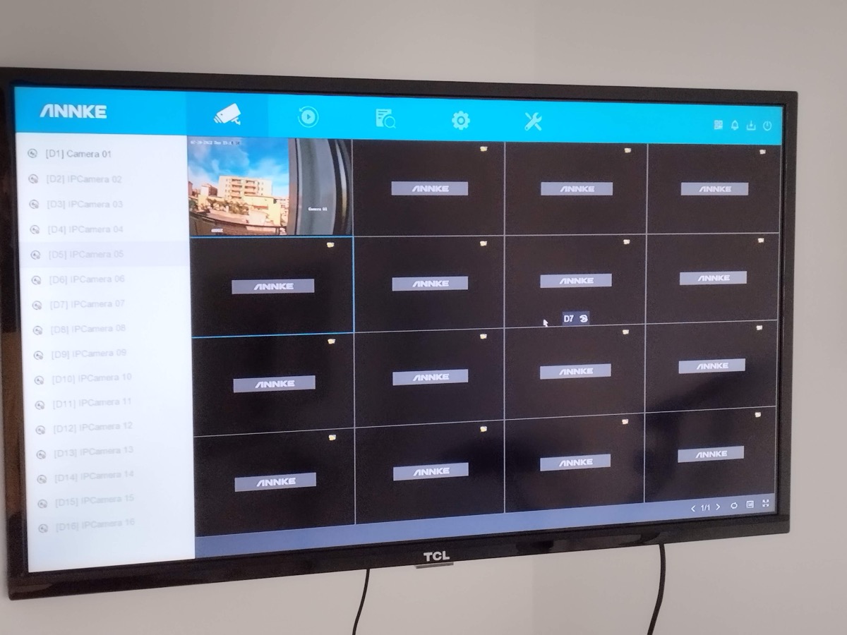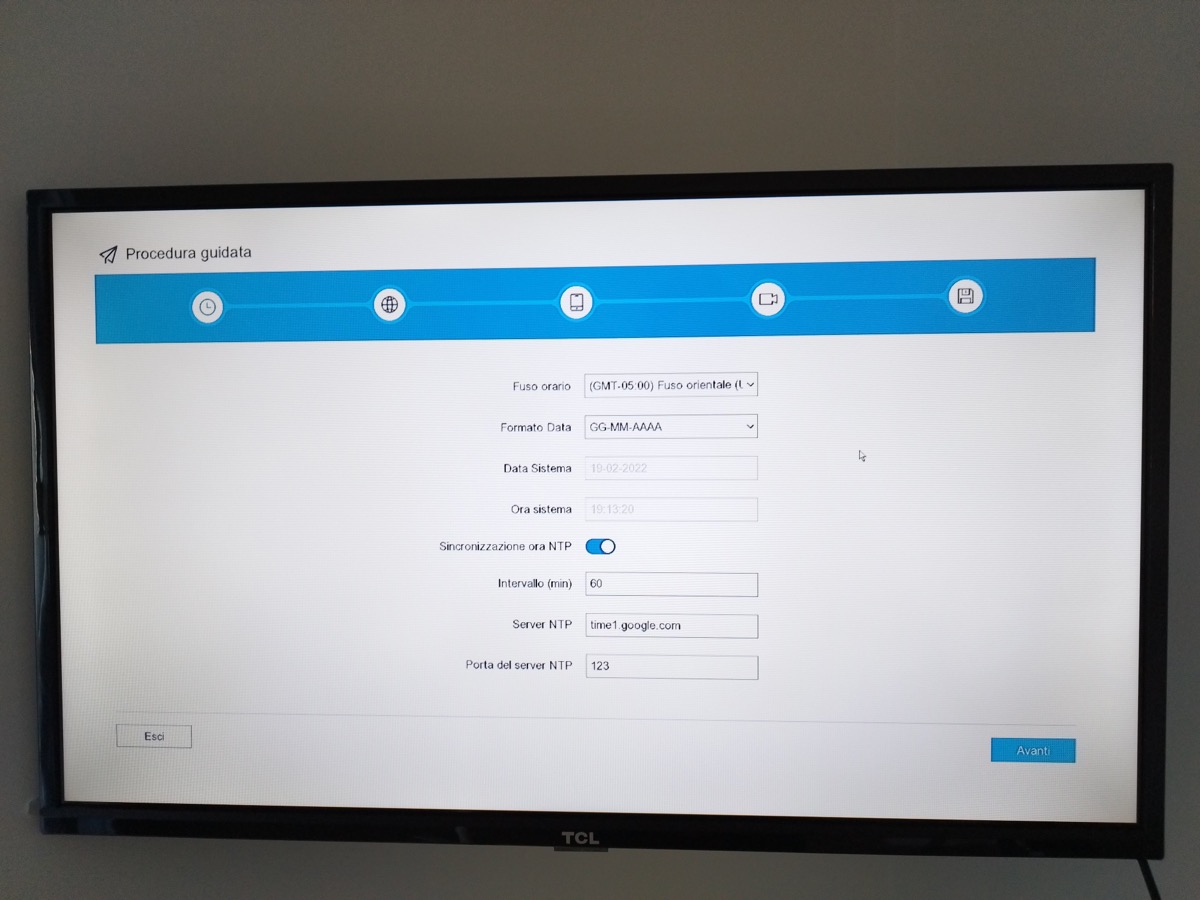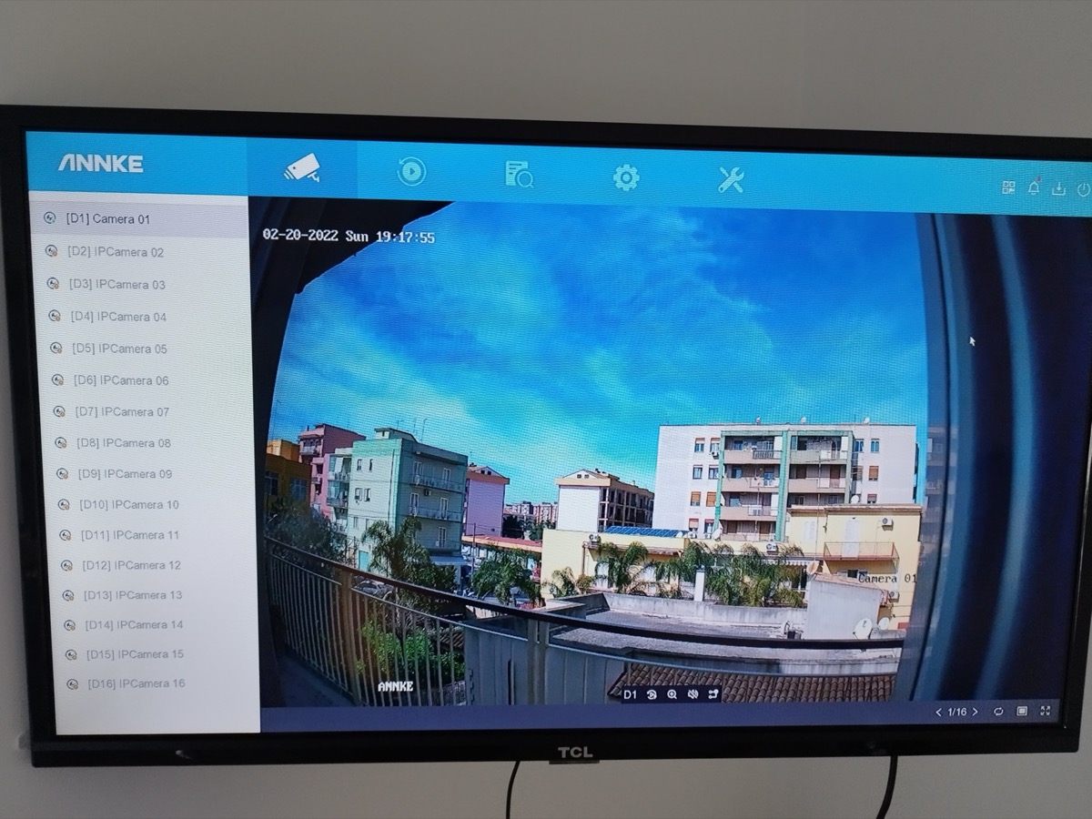 E’ stato sufficiente inserire una password e la mail, per poter entrare immediatamente nel pannello di controllo, e visualizzare la camera NC800. Per il primo avvio è sufficiente collegare il cavo ethernet ad una delle prese PoE presenti sull’NVR, a sua volta collegato tramite HDMI ad un monitor, così da iniziare subito ad utilizzarla.