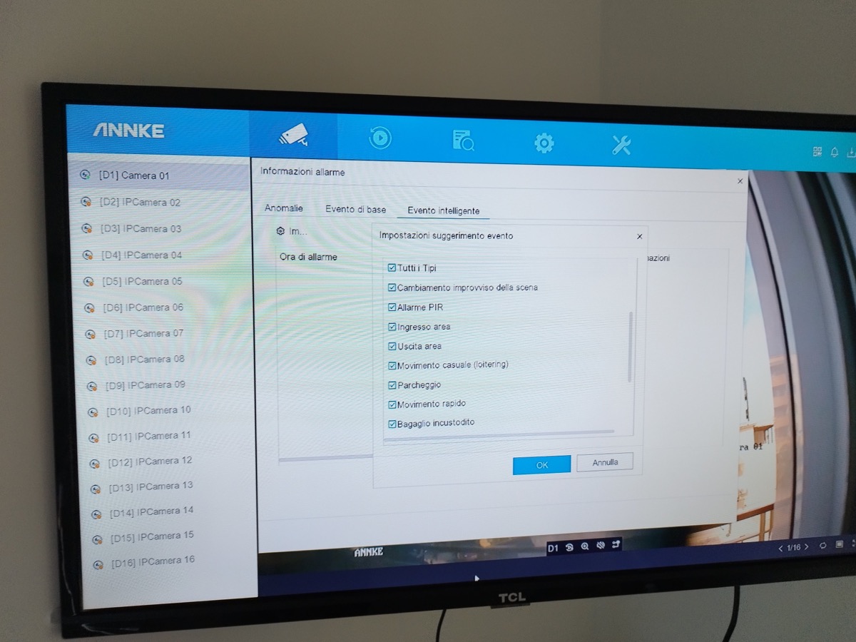 Il menù può essere navigato attraverso un qualsiasi mouse collegato tramite USB all’NRV. Da qui, è possibile visualizzare il live streaming, oltre ad impostare tutti i vari allarmi che si desidera ricevere dalla telecamera, che distingue il passaggio di una persona, da quello di un veicolo. Si tratta di un grande passo in avanti nella tecnologia di miglioramento, perché questo aiuta anche a ridurre al minimo, se non eliminare del tutto, i falsi allarmi, che possono essere dettati da animali o oggetti inanimati casuali, come rami ondeggianti, foglie che cadono, gocce di pioggia, e altro ancora.