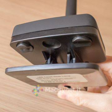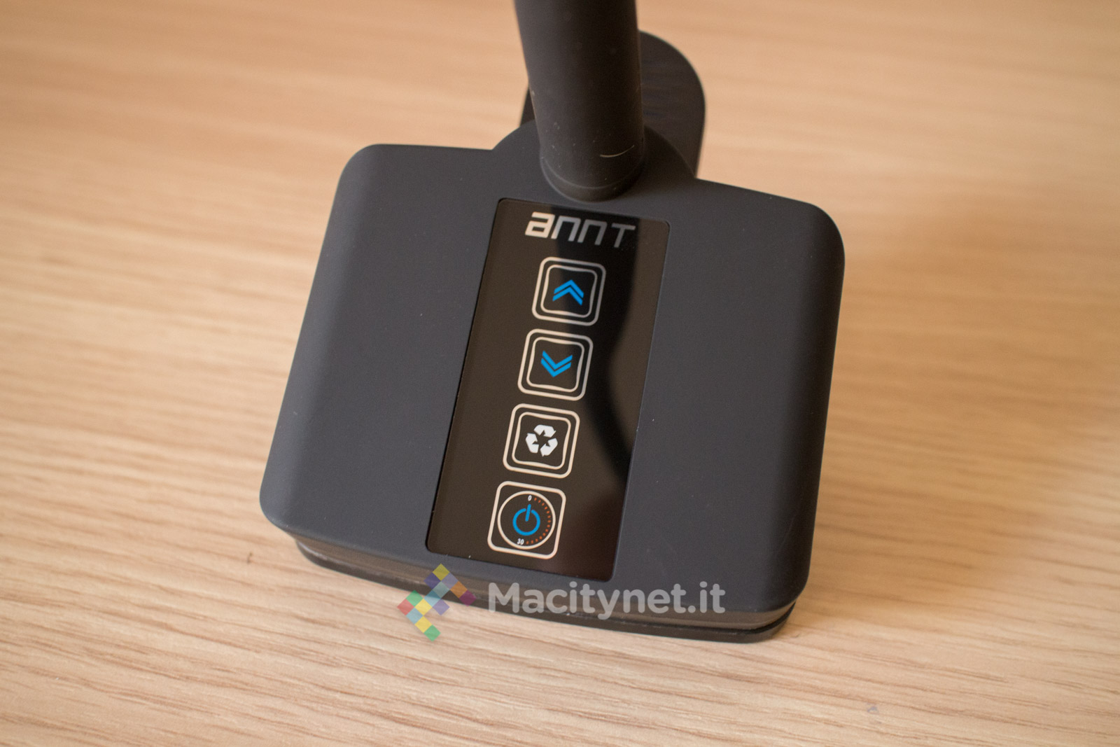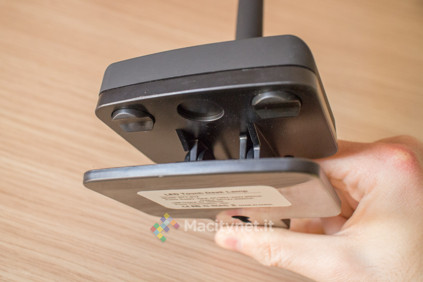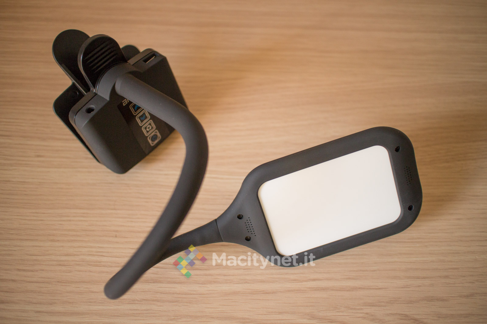 Sulla pinza trovano posto quattro tasti touch, utili per accendere/spegnere la luce, regolarne l’intensità e la temperatura colore, oltre che per attivare il timer di spegnimento automatico.