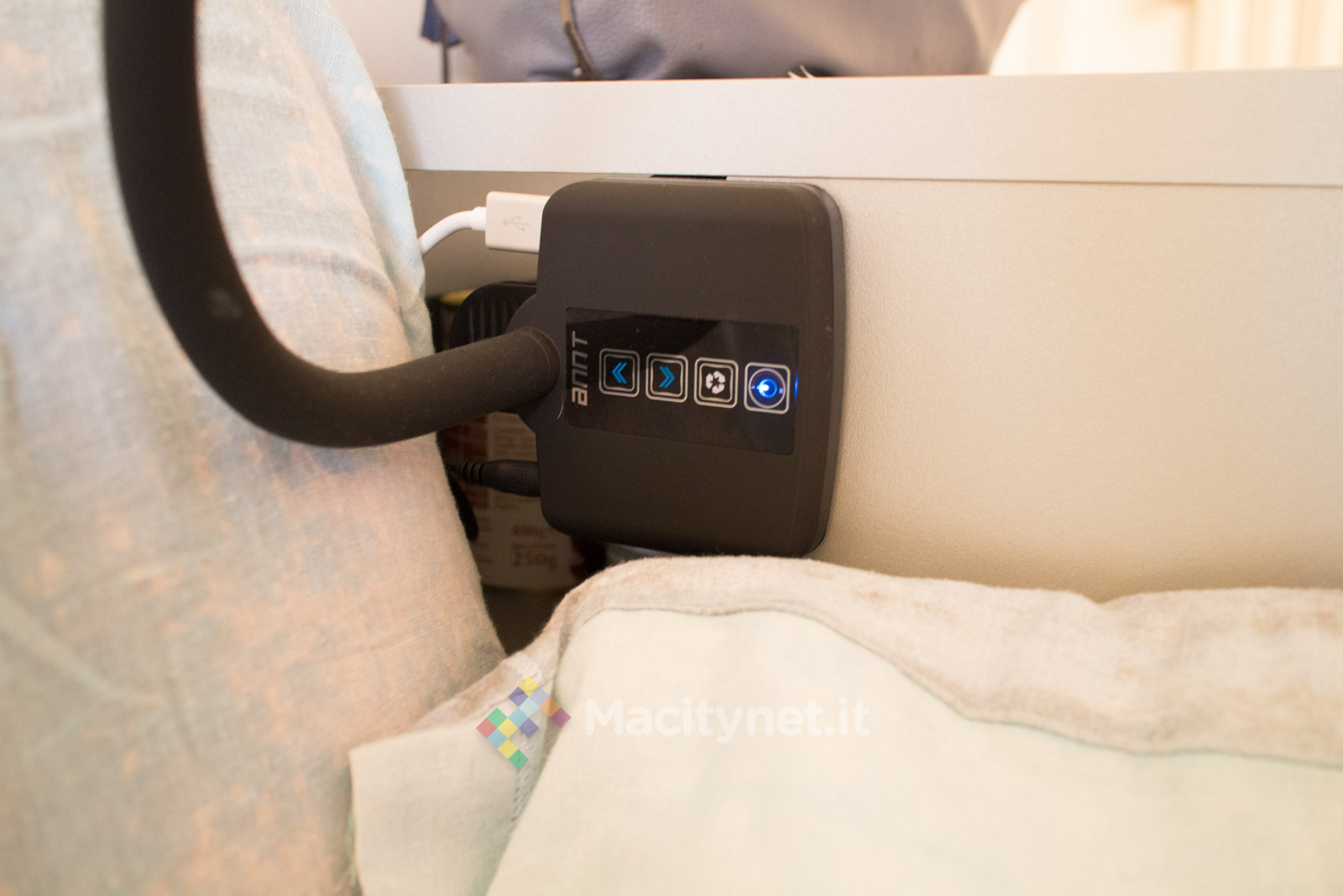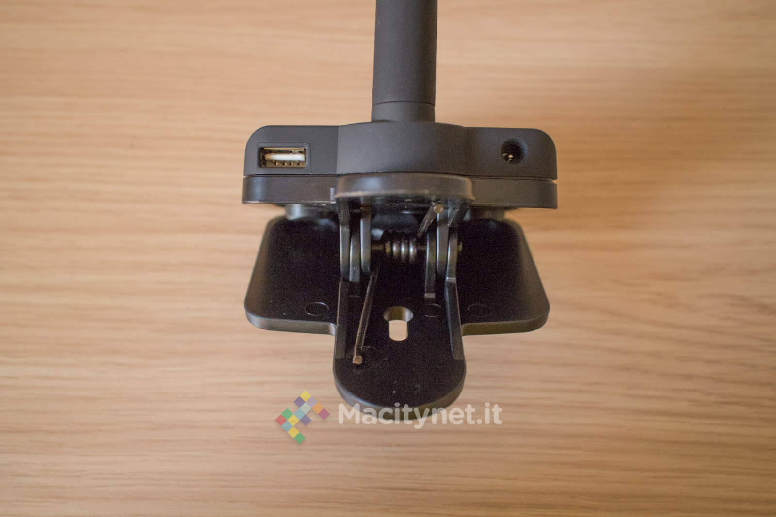 Sul retro c’è poi l’ingresso per l’alimentazione ed una presa USB alla quale è possibile collegare un cavo per ricaricare smartphone e tablet.