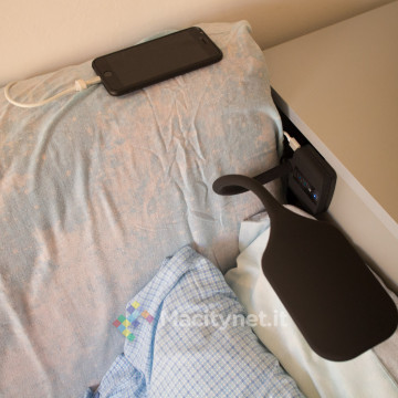 Nonostante l’importante spessore della spalliera, la pinza si è agganciata saldamente al legno, per altro scivoloso, aderendo in maniera eccellente grazie agli inserti in gomma che, come anticipato, troviamo all’interno della pinza. Anche in verticale non scivola e non si è mai spostata per i tre giorni consecutivi per i quali è rimasta agganciata al letto.