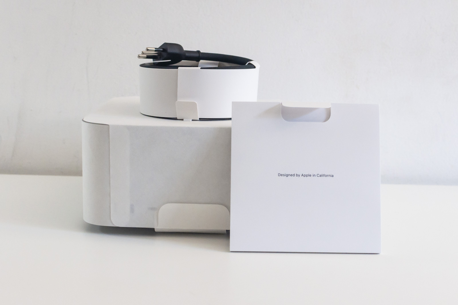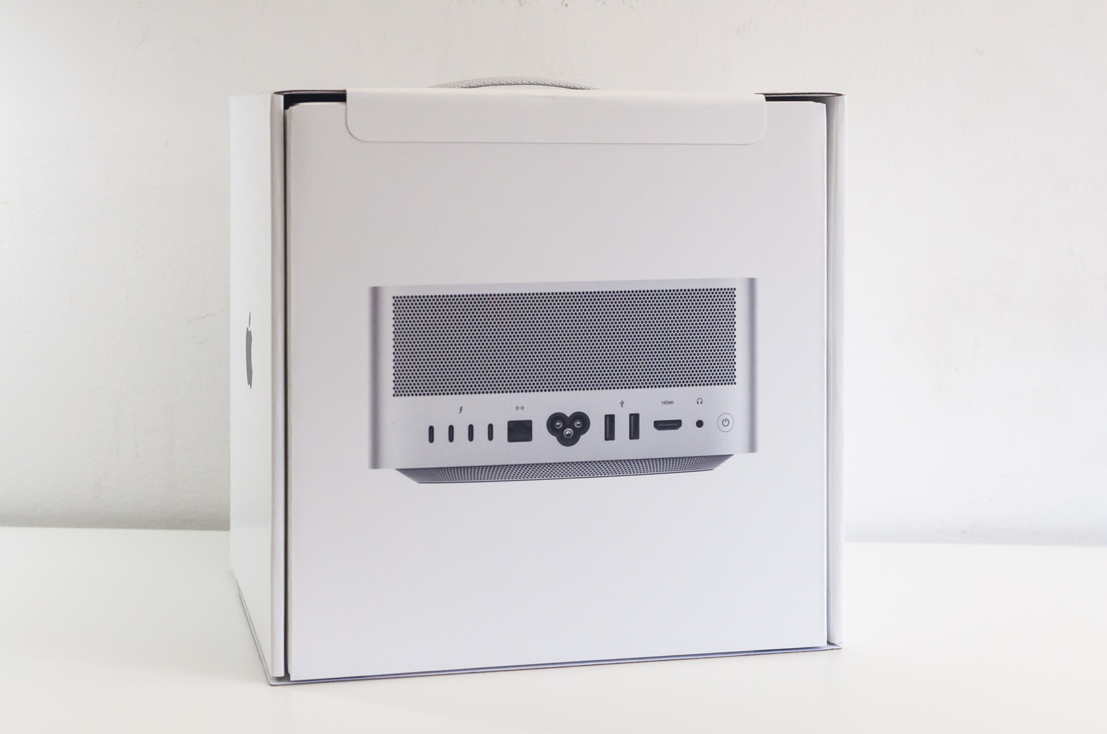 La confezione dei nuovi Mac Studio è davvero un capolavoro di marketing e di ingegneria, Apple non si discosta dalle proprie abitudini per quanto riguarda il packaging e propone una scatola comoda, bella e che diventa anche una ottimale culla per chi deve trasportare il Mac Studio.