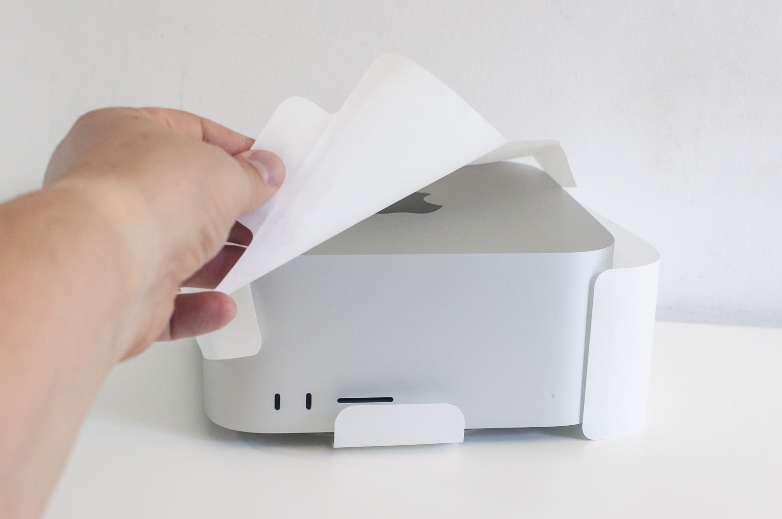Sostanzialmente possiamo assicurare che un po’ per il peso, un po’ per la gomma sotto la base, una volta posizionato il Mac studio sulla scrivania, non si sposta a meno che non lo faccia l’utente deciso ad alzarlo per muoverlo.