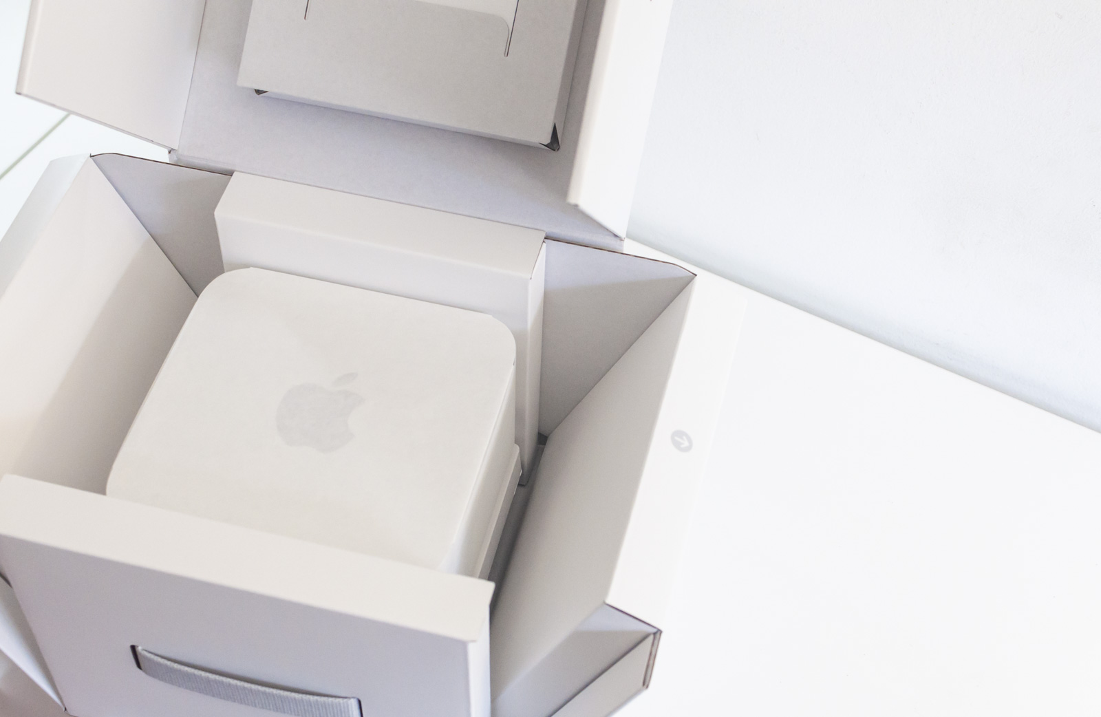 Per il resto nella scatola c’è poco, trattandosi di un modello desktop: il cavo d’alimentazione con connettore standard e il classico libretto di Apple, con gli adesivi con la mela Nera, invece che quella classica bianca. Ricordiamo che l’alimentatore è interno e questo rende ancora più comodo trasportarlo da casa ad ufficio e viceversa: basta avere un cavo collegato alla presa di rete nella postazione di arrivo.