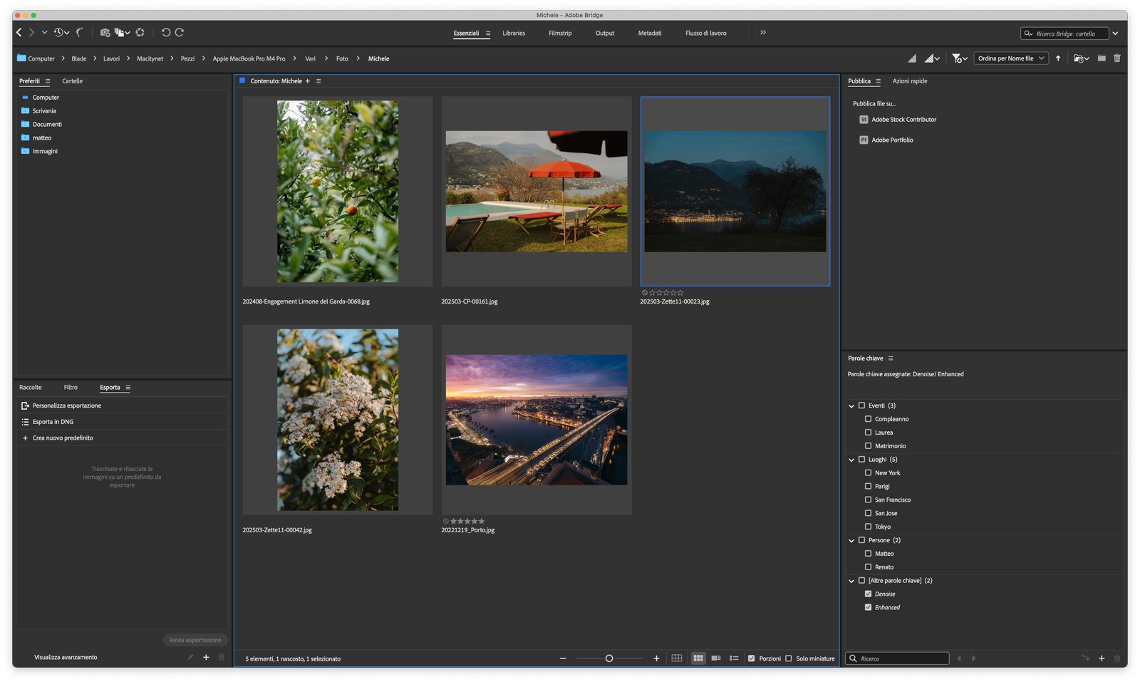 Non lo si nota nelle piccole cose, come l’apertura di una app o la gestione dei file e delle anteprime, che rimane perlopiù uguale, ma dai tempi dei compiti eseguiti: la conversione di una clip da MKV a MP4 tramite HandBrake, ha necessitato di meno della metà del tempo (11 secondi contro 30), mentre l’esecuzione di una azione in batch, con quattro filtri su un oggetto avanzato in Photoshop più un ricampionamento del 200%, da file fotografici di una Fuji GFX100 (11648×8736 pixel) su 5 immagini, ha necessitato di soli 5,21 minuti, contro 7,35 del vecchio M3 Pro.