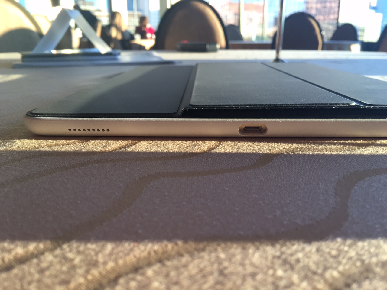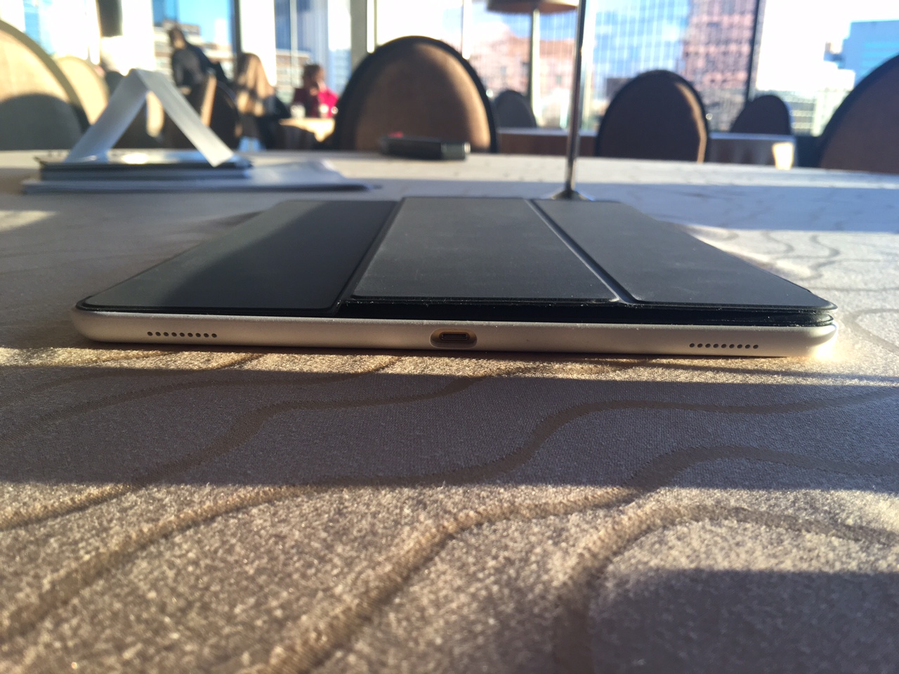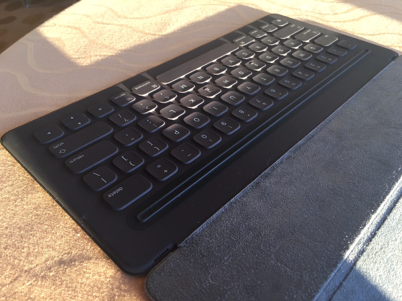 Dopo aver viaggiato, utilizzando la tastiera sugli aerei (in classe economica con sedili piuttosto ravvicinati), in taxi, sulle ginocchia durante le conferenze stampa, e su un’ampia varietà di tavoli e tavolini emergono alcune considerazioni finali. La tastiera di Apple per iPad Pro, la Smart Keyboard, è molto interessante. Non ha bisogno di alimentazione separata o connessioni WiFi, è in pratica una cover per iPad Pro ed è anche ben bilanciata e rigidamente agganciata, consentendone l’utilizzo senza rischio di sbilanciamenti su superfici instabili.