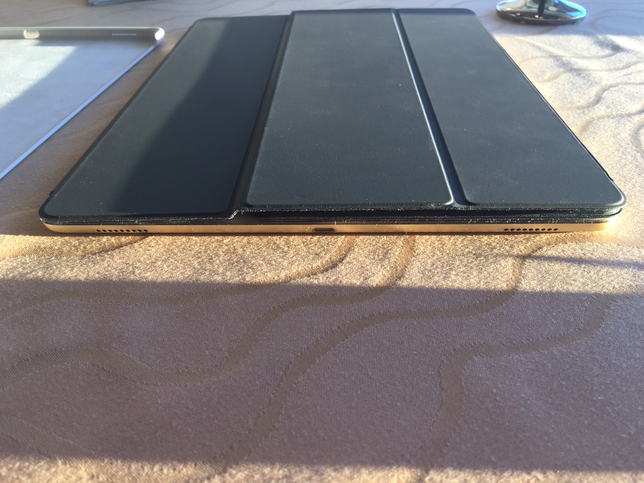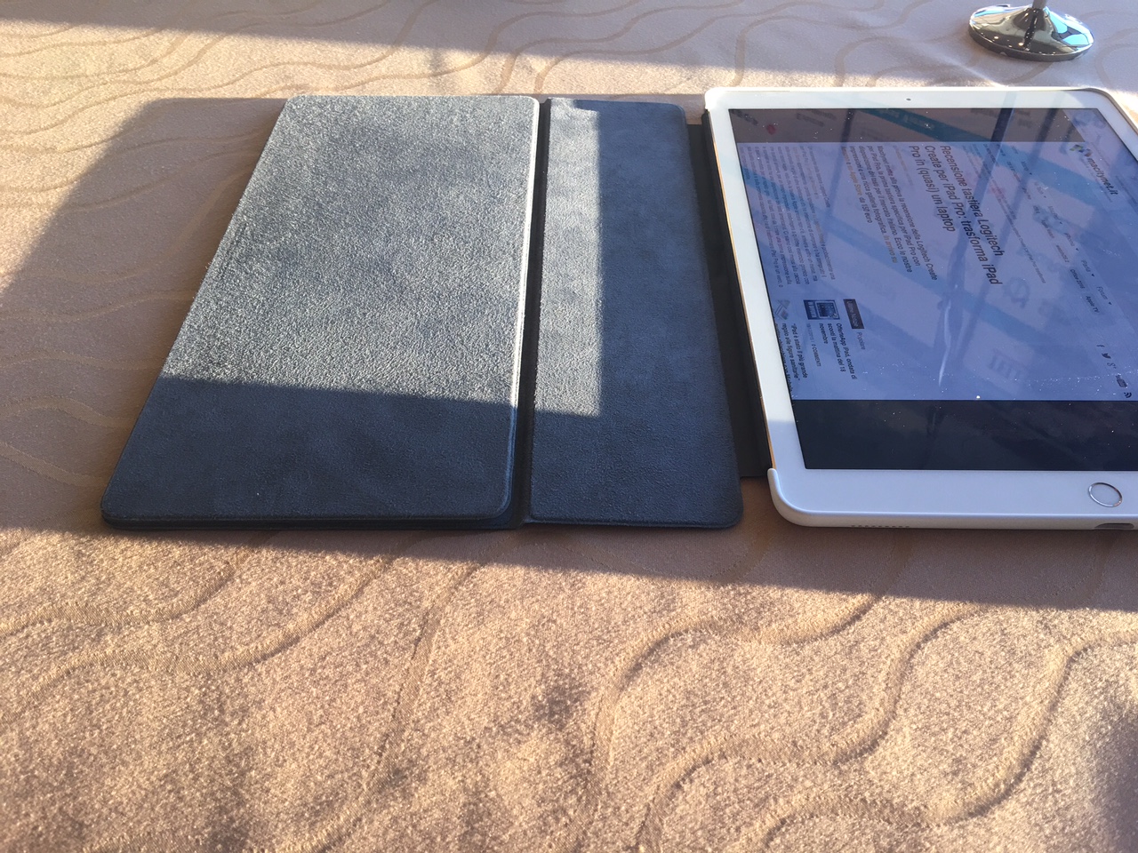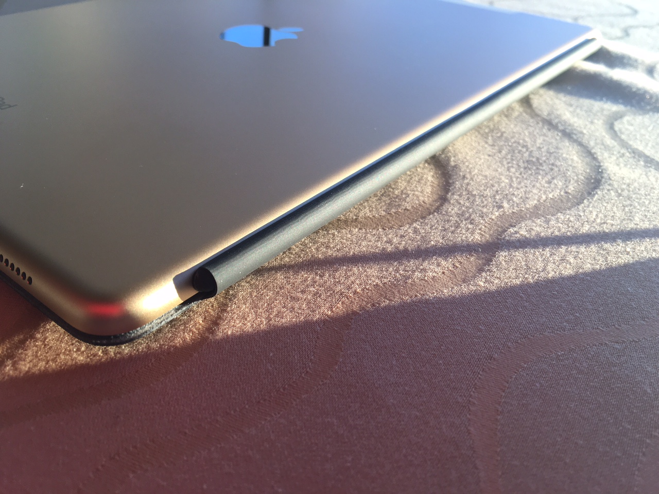 Le cover di dimensioni sottili utilizzate finora con iPad Air 2 e iPad Mini non erano in grado di garantire un appoggio sufficientemente stabile per fare questo, Surface ha fatto addirittura ricorso a una specie di stampella posteriore per guadagnare l’equilibrio per stare in posizione di scrittura su varie superfici ma in modo non ottimale nell’esperienza dello scrivente. In questo caso Apple ha trovato davvero un’ottima soluzione, che funziona nonostante il peso e lo spessore estremamente ridotti della Smart Keyboard.