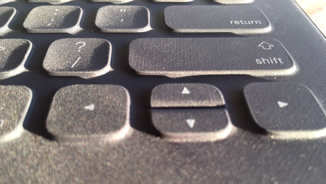 La cover inoltre ha la parte dei pulsanti nella tastiera realizzata con un materiale in tessuto speciale, molto resistente, lavorato al laser per tagliare i singoli tasti. È il tessuto stesso a dare resistenza alla pressione, mentre i tasti, che hanno forma a isola con dimensioni leggermente inferiori a quelle di una tastiera regolare, sono privi di fessure tra un tasto e l’altro, rendendo sostanzialmente impermeabile lo strumento di scrittura. Inoltre, i tasti sono particolarmente silenziosi nell’attuazione, soprattutto se si pensa alla nuova tastiera con attuazione a farfalla anziché a forbice che è molto rumorosa, presentata da Apple per il MacBook 12 e poi ribadita nella nuova tastiera Mac wireless con batteria incorporata. I tasti della Smart Keyboard sono spessi 3,2 millimetri, mentre la tastiera nel suo complesso è alta come detto 4 millimetri.
