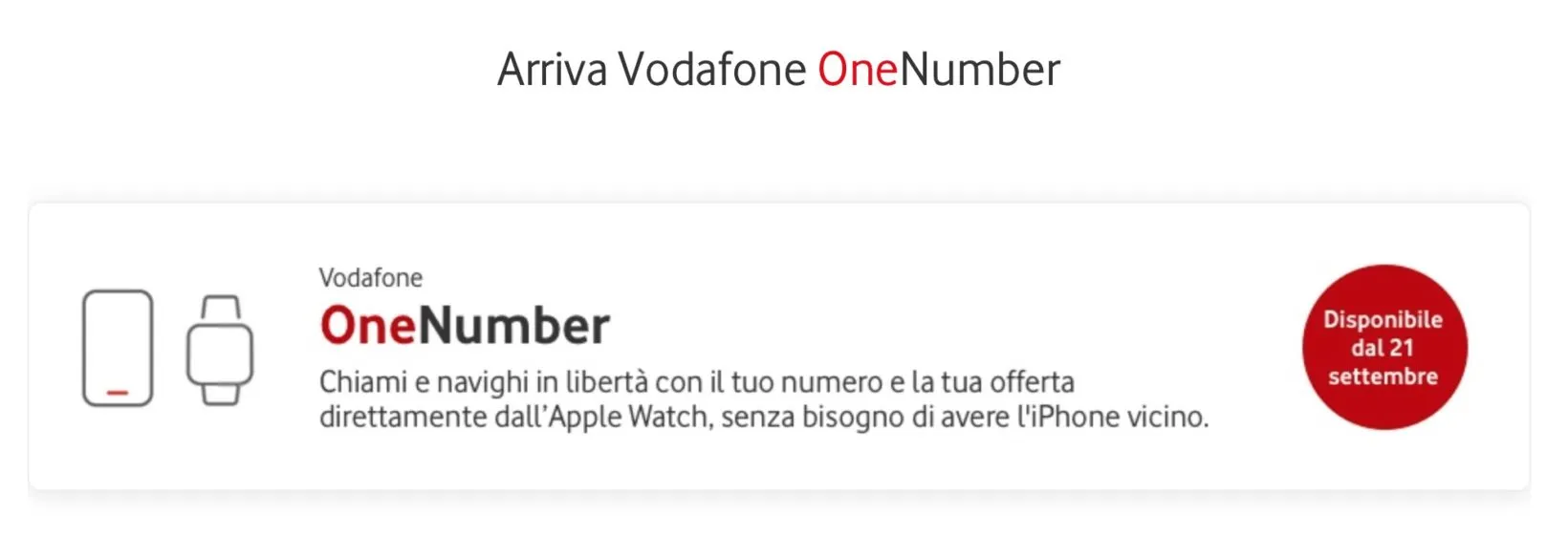 Seconda premessa dopo quella funzionale: Apple Watch 4 ed Apple Watch 3 LTE al momento sono compatibili solo con un contratto Vodafone. Attualmente in Italia l’operatore mobile britannico è l’unico gestore che con la sua offerta One Number, garantisce il funzionamento dello smartwatch LTE di Apple in Italia. Nel momento in cui scriviamo l’offerta ha le seguente condizioni: