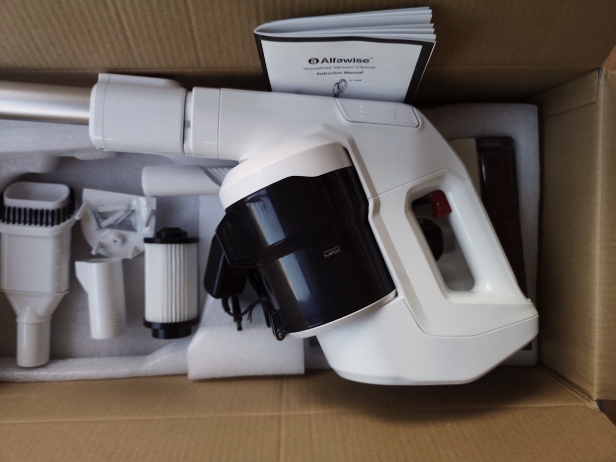 Si tratta di un aspirapolvere senza fili dal buon rapporto prezzo-prestazioni: la finitura in policarbonato e il tubo in alluminio gli conferiscono un aspetto attuale ed elegante e pure il serbatoio per lo sporco raccolto anche se un po’ troppo oscurato contribuisce a rendere l’Alfawise FJ-166A un prodotto che sembra appartenere ad una classe superiore.