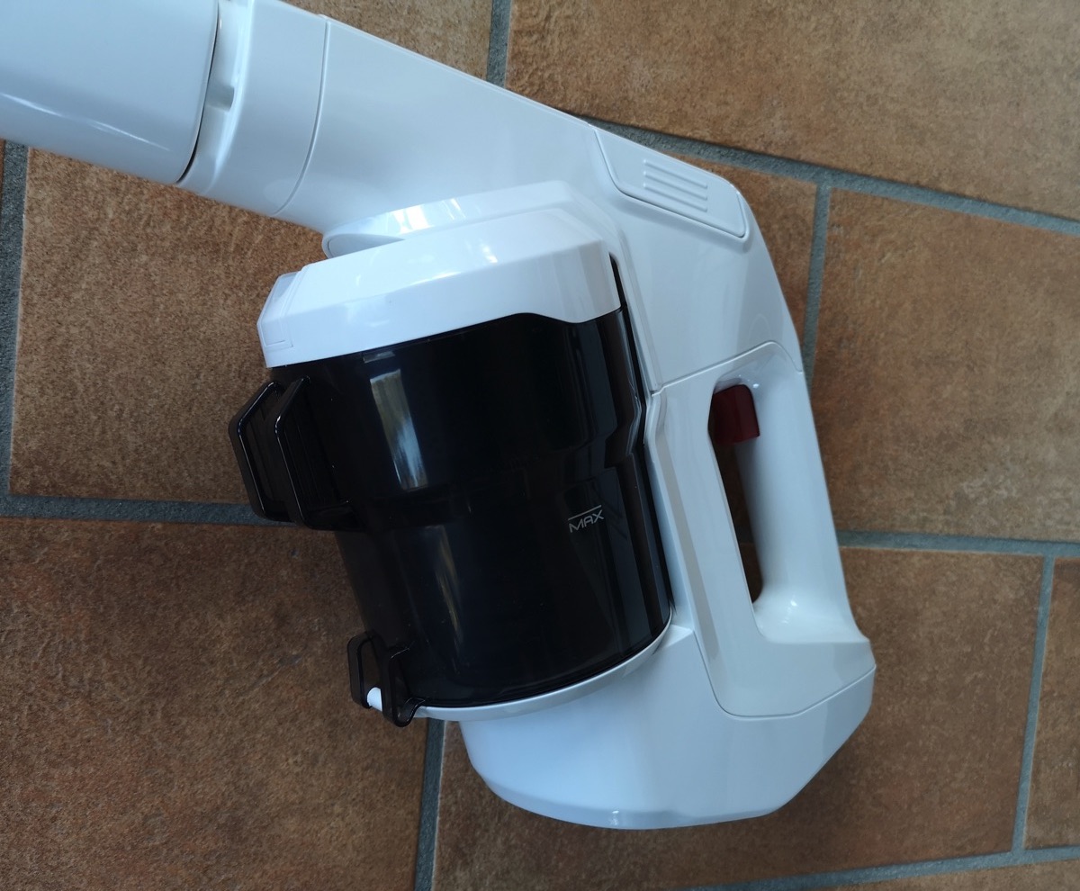 Complessivamente i 2,8 kg di peso sono ben distribuiti anche se come abbiamo già detto, leggermente sbilanciati verso l’impugnatura. Il livello di rumore dichiarato intorno agli 80 DB è inferiore a quello degli asprirapolvere a traino standard e a bassa potenza perfettamente utilizzabile anche nelle primissime ore del mattino senza svegliare tutta la casa o, peggio ancora, i vicini.