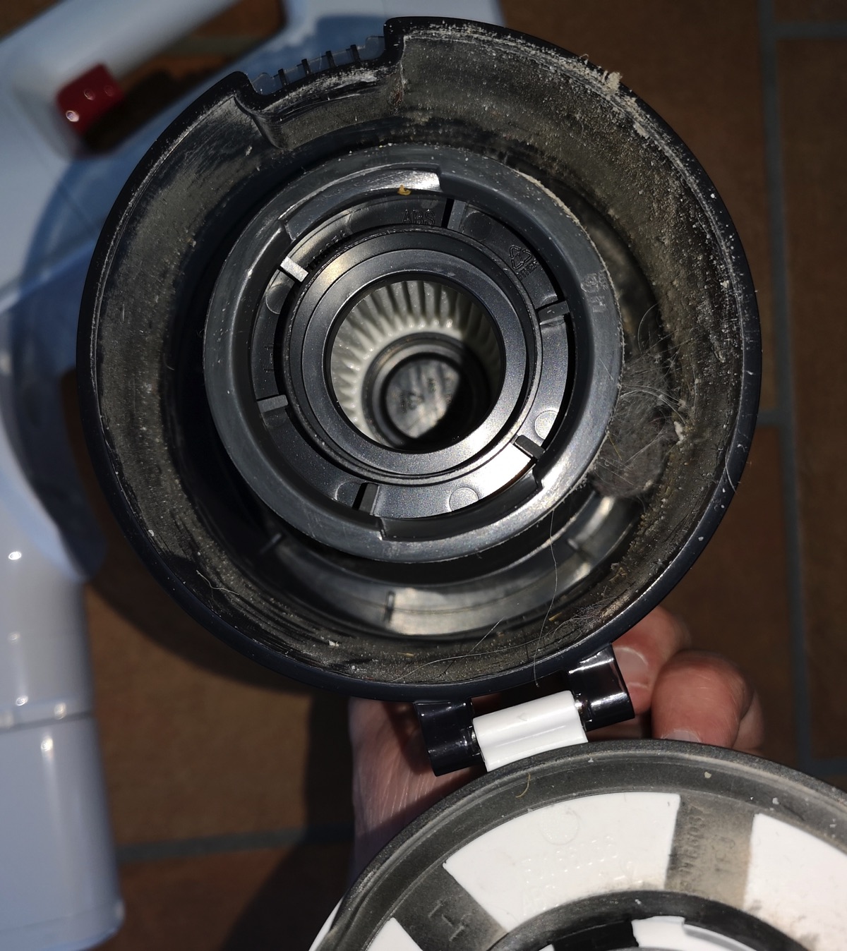 C’è da dire che rispetto ad altri asprirapolvere senza filo che stiamo provando questo è molto “sezionabile”: il blocco batteria e’ completamente staccabile (e questo offre una sicurezza in più), la vasca che contiene lo sporco è facilmente rimovibile ed è presente un filtro Hepa di riserva il cui ricambio viene consigliato dopo 6 mesi d’uso ma potete lavarlo a mano una volta al mese e prolungare la sua vita visto che la rimozione dalla sede e piuttosto semplice.