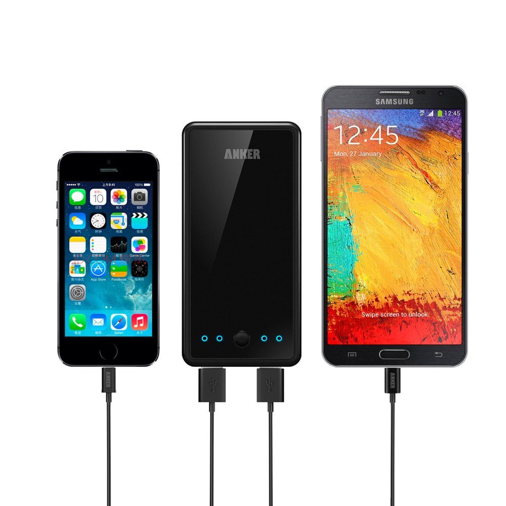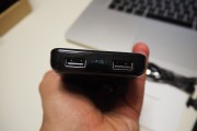 Ma che cosa distingue la Astro E3 dal resto della concorrenza e perché abbiamo deciso di testarla? In primo luogo è un prodotto ben disegnato e ben assemblato, impressione che si ricava fin da subito nelle fotografie e che si conferma una volta preso contatto con essa. I materiali sono di ottima qualità (anche se la plastica extra-lucida tende a prendere le impronte in maniera molto accentuata) ed il montaggio è a regola d’arte, i 4 LED blu che segnalano la carica hanno un bell’effetto estetico. Anche il fattore di forma è ottimo: nonostante i 10.000 mAh, è poco più grande di un iPhone, è spessa 1,5 centimetri ed è pesante due etti e mezzo, un rapporto tra peso e dimensioni che non ci permette di definirla tascabile, ma che la rende comunque adatta a stare nella tasca di un giaccone e ad essere trasportata senza difficoltà in una borsa o uno zaino. Ma i veri punti di forza della Astro E3 sono due e sono di carattere tecnico. La prima è che ha due porte USB (che per la nostra esperienza sono un quantitativo sufficiente per l’uso di un utente medio) con uscita intelligente. In pratica da ciascuna di esse viene erogata la potenza massima (fino a 2A) in base al dispositivo collegato. Non è quindi necessario scegliere a quale porta connette un iPhone, un telefono Android o un iPad come avviene con altri prodotti. Basta semplicemente collegare il dispositivo e la batteria comprende che cosa deve fare. Questa tecnologia, che Anker denomina PowerIQ, è affiancata da un secondo fattore di rilievo: la porta in ingresso recepisce fino a 2A (anche se è limitata alla velocità massima di MicroUSB che porta solo fino a 1,8A). Altri dispositivi concorrenti e con pari capacità assorbono solo fino ad 1A, i migliori al massimo arrivano 1,5A; visto che parliamo di una batteria da 10.000 mAh, è come pensare di ricaricare un iPad 3G (o quasi) con l’alimentatore di un iPhone e chi ci ha provato sa che cosa significa in termini di tempo.