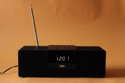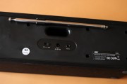Esteticamente è gradevole, il modello che abbiamo provato è in legno verniciato nero, ma esiste una versione dal look più vintage con cassa marrone. Al tatto si percepiscono le striature del legno, che è comunque lavorato e levigato per offrire il miglior feedback sia al tatto che alla vista. Mentre sulla base troviamo quattro piccoli piedini in gomma, il retro è in plastica dove, oltre all’antenna telescopica incassata orizzontalmente così da non essere visibile quando non utilizzata, troviamo il pulsante ON/OFF, l’ingresso DC e quello AUX.