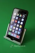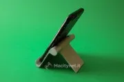 L’alluminio del supporto è robusto, di colore grigio con finitura opaca, proprio come quello dei dispositivi Apple. Affiancato ad un Mac infatti, fa la sua bella figura. Un piccolo incavo sull’area frontale permette eventualmente di interagire con il tasto Home di iPhone e iPad quando posizionati centralmente in verticale senza dover togliere o spostare il dispositivo.