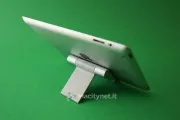 Appena estratto, ci si rende subito conto di avere tra le mani non un supporto qualunque, ma un accessorio solido e fatto per durare nel tempo. In rapporto alle dimensioni (10 x 9 x 1,8 centimetri), è abbastanza pesante (183 grammi). Questo perché il corpo è in alluminio, eccezion fatta per il cavalletto ed il pulsante, semplicemente in plastica. Di gomma sono invece i piedini, così come la base del cavalletto, oltre alla slitta e le due sporgenze utili rispettivamente per appoggiare il dispositivo e sostenere il retro, evitandone il contatto con la superficie che alla lunga avrebbe potuto graffiarlo.
