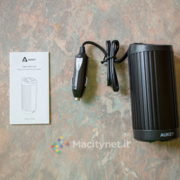 Aukey PA-V25 è un interessante soluzione per chi vuole sfruttare la batteria dell’automobile per alimentare dispositivi dotati della sola spina elettrica. Purché non si superino i 150W (quindi dimenticate il phon per capelli) tutto funziona, e con l’auto accesa non c’è pericolo di scaricarne la batteria.