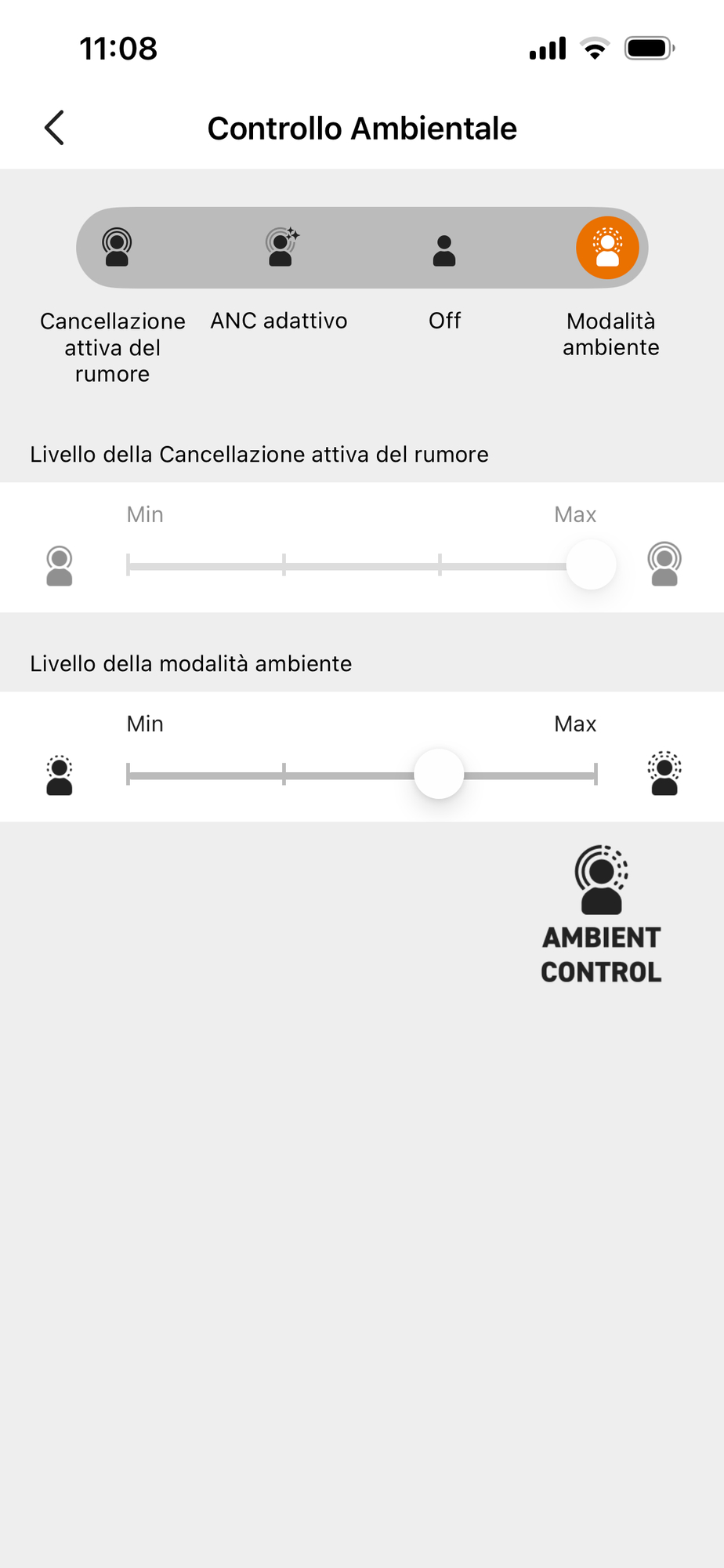 Sia la modalità Ambiente che quella Adattiva inoltre offrono ulteriori livelli di personalizzazione per lasciare l’utente libero di capire l’intensità dell’intervento sul rumore.