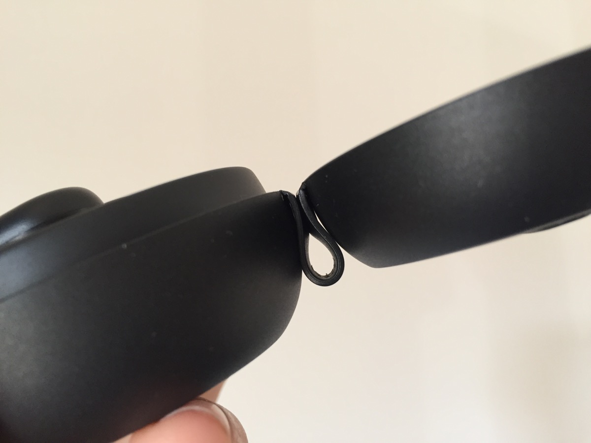 E’ la linguetta che invece tiene unite le due parti, base e coperchio, che lascia un po’ a desiderare. E’ debole, ballerina, e da tutta l’impressione di strapparsi tra qualche mese. Qui per altro va anche fissato il laccio da polso, che sarebbe stato meglio posizionare con il più tradizionale sistema di fori, da incassare magari in un punto della cornice esterna. Secondo noi va rivisto completamente il sistema di chiusura, magari con una cerniera più salda, oppure con un meccanismo completamente diverso che offre l’accesso all’area interna tramite la rotazione del coperchio: d’altronde la forma circolare, di una pallina schiacciata ai due lati, lo renderebbe particolarmente intuitivo.