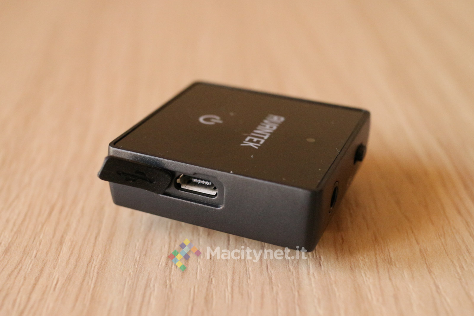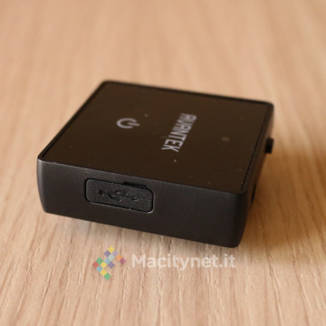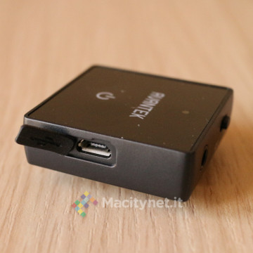 Lo abbiamo provato nella modalità RX (ricevitore) trasmettendo la musica di iPhone in Bluetooth ad uno stereo al quale abbiamo collegato il dispositivo attraverso l’ingresso AUX tramite il cavo jack-jack da 3,5mm incluso nella confezione.