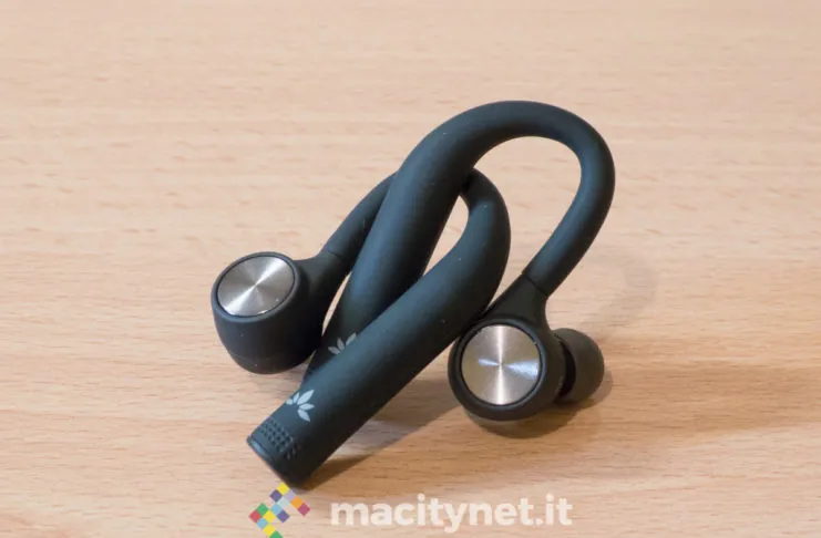 La forma, dicevamo, è quella classica ad archetto. Sono leggermente più bombati lungo la parte terminale che sparisce dietro l’orecchio: qui, sul fondo, è ben visibile la presa microUSB utile per la ricarica della batteria interna, incorporata proprio in quest’area del guscio.