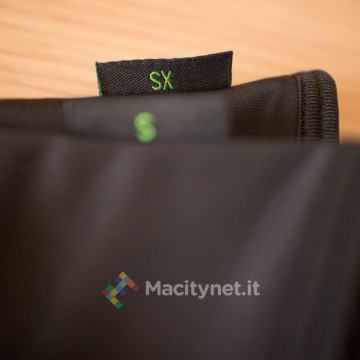 Oltre alla tasca adibita per lo smartphone – abbastanza ampia da facilitare l’eventuale collegamento anche di cuffie con filo – ce ne è una secondaria, separata da quest’ultimo attraverso un pezzo di stoffa traforata, dove si può eventualmente inserire una carta di credito, un documento o una chiave, per allenarsi fuori casa mantenendo le mani libere.