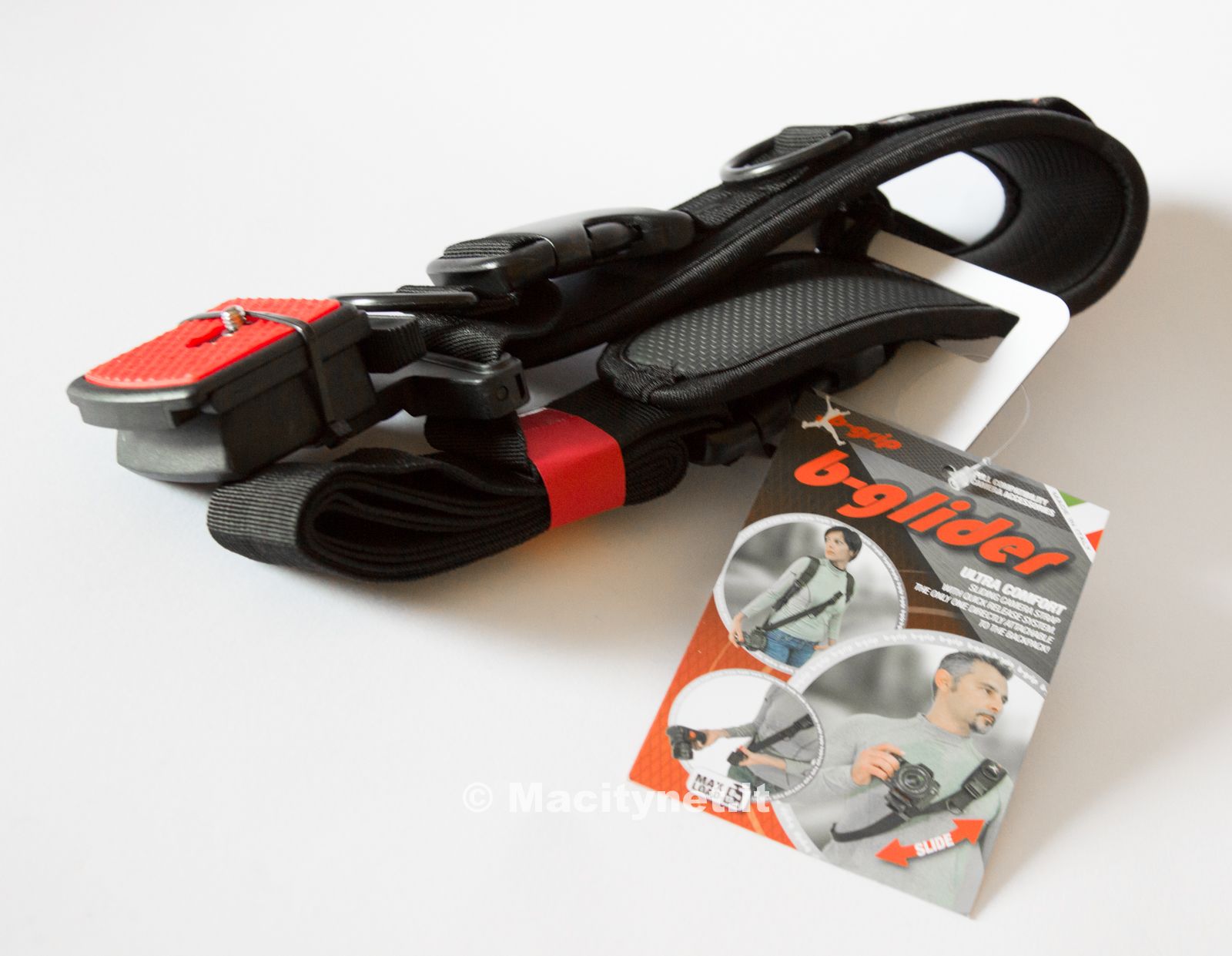 La classica tracolla inclusa nella confezione all’acquisto della reflex è sicura soltanto se portata al collo anche se, oltre al peso che grava sul collo, un altro dei più grandi difetti è senz’altro il continuo “rimbalzo” che tutta la macchina ha contro il petto quando si cammina. Di reali soluzioni ce ne sono tante, una è senz’altro la tracolla a spalla che abbiamo testato nelle scorse settimane e di cui siamo rimasti piacevolmente colpiti sotto diversi aspetti che analizzeremo nel corso della recensione: si chiama b-glider ed è prodotta da Bgrip, azienda tutta italiana con sede a Bologna che si concentra proprio su accessori per fotografi amatoriali e professionisti.