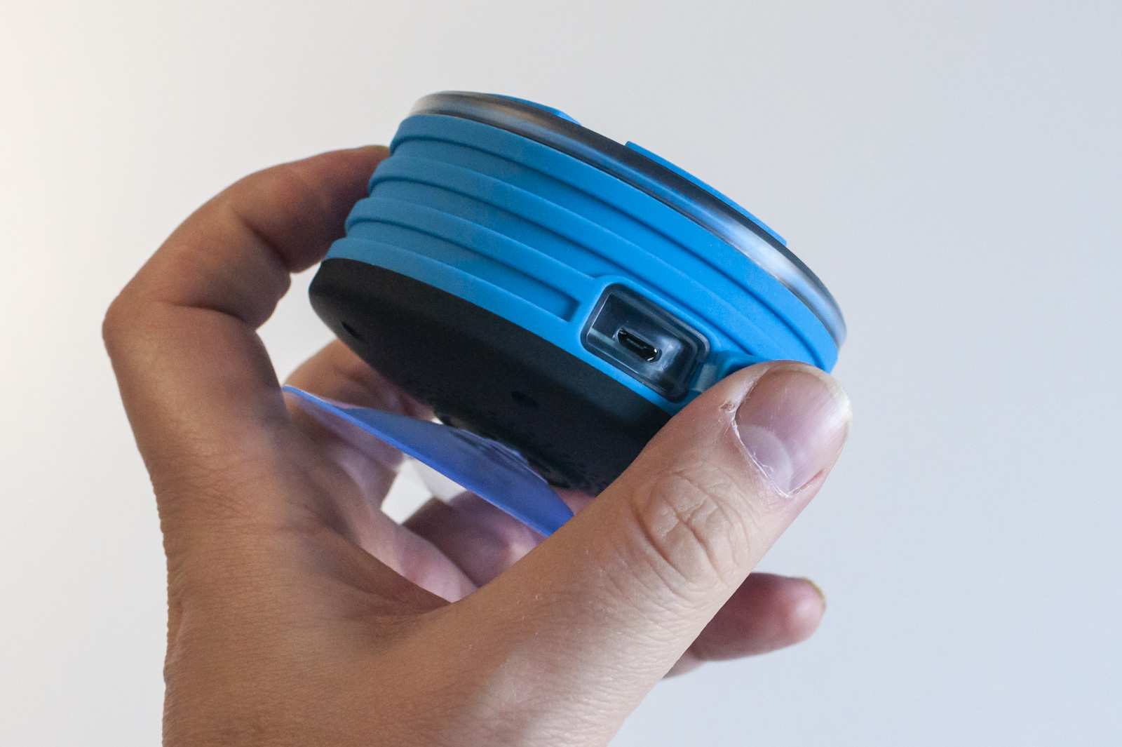 A questo si unisce un rivestimento in gomma morbida che isola le parti elettroniche dall’acqua, ma che lo protegge anche dalle cadute: la ventosa, in dotazione, è buona e sostiene il piccolo BassPal altoparlante per doccia quando adagiato su una superficie liscia e se vi cade nella vasca niente paura, l’altoparlante galleggia.