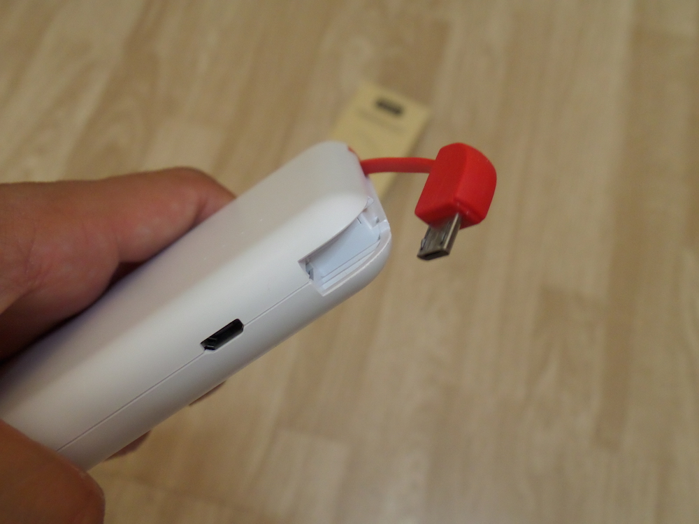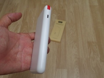 Il connettore è lungo solo pochi centimetri, giusto per inserirsi esattamente alle due estremità del lato corto della batteria, che in totale misura 7 cm circa. Proprio in corrispondenza dei due angoli superiori della powerbank, infatti, sono situato gli ingressi USB e Micro USB, in cui si incastra perfettamente il cavetto in dotazione. Da un lato la comodità è indubbia: scongiura il pericolo di scordare il cavo di ricarica, dato che è sempre incluso al linterno della batteria, e non risulta affatto ingombrante. Dall’altro lato, però, il cavo molto corto, obbliga a mantenere lo smartphone quasi attaccato alla batteria, durante tutto il periodo di ricarica. Quest’ultimo elemento non dà fastidio quando il cellulare è adagiato su una superficie piana, come una scrivania, ma impedisce quasi completamente l’utilizzo del terminale in molte altre circostanze: sul divano o a letto, è difficile mantenere il cellulare all’altezza del viso, dovendo “trascinare” con se anche la batteria. Quest’ultima ha un peso che si aggira sui 200 grammi, non tra le più leggere della categoria, anche se a livello di dimensioni è molto trasportabile, potendosi tenere perfettamente in una mano.