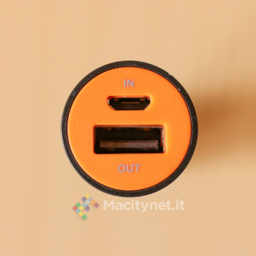 Un solo pulsante, su un lato del tubo, accende i 4 LED utili per scoprire di quanta energia dispone ancora la batteria (ciascuno indica il 25%). A differenza di qualche altro modello simile non ha la funzione di torcia, è pensata soltanto per ricaricare i telefoni e non deve essere neanche accesa per funzionare visto che, non appena si collega il telefono con il cavetto (per telefoni Android e Windows Phone si può anche sfruttare il cavo microUSB incluso nella confezione), la batteria si accende automaticamente iniziando subito la ricarica.