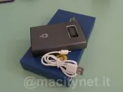 Una pressione prolungata del tasto on/off, invece, attiva il LED bianco, che funge da torcia e riesce ad illuminare una stanza di piccole dimensioni. La possibilità di trasformare, in situazioni di emergenza, la batteria in torcia, risulta particolarmente apprezzabile e davvero utile in determinati casi. A completare il corredo, nel pack di vendita, anche un piccolo astuccio morbido grigio in micro fibra, utile per trasportare la batteria senza rovinarla.
