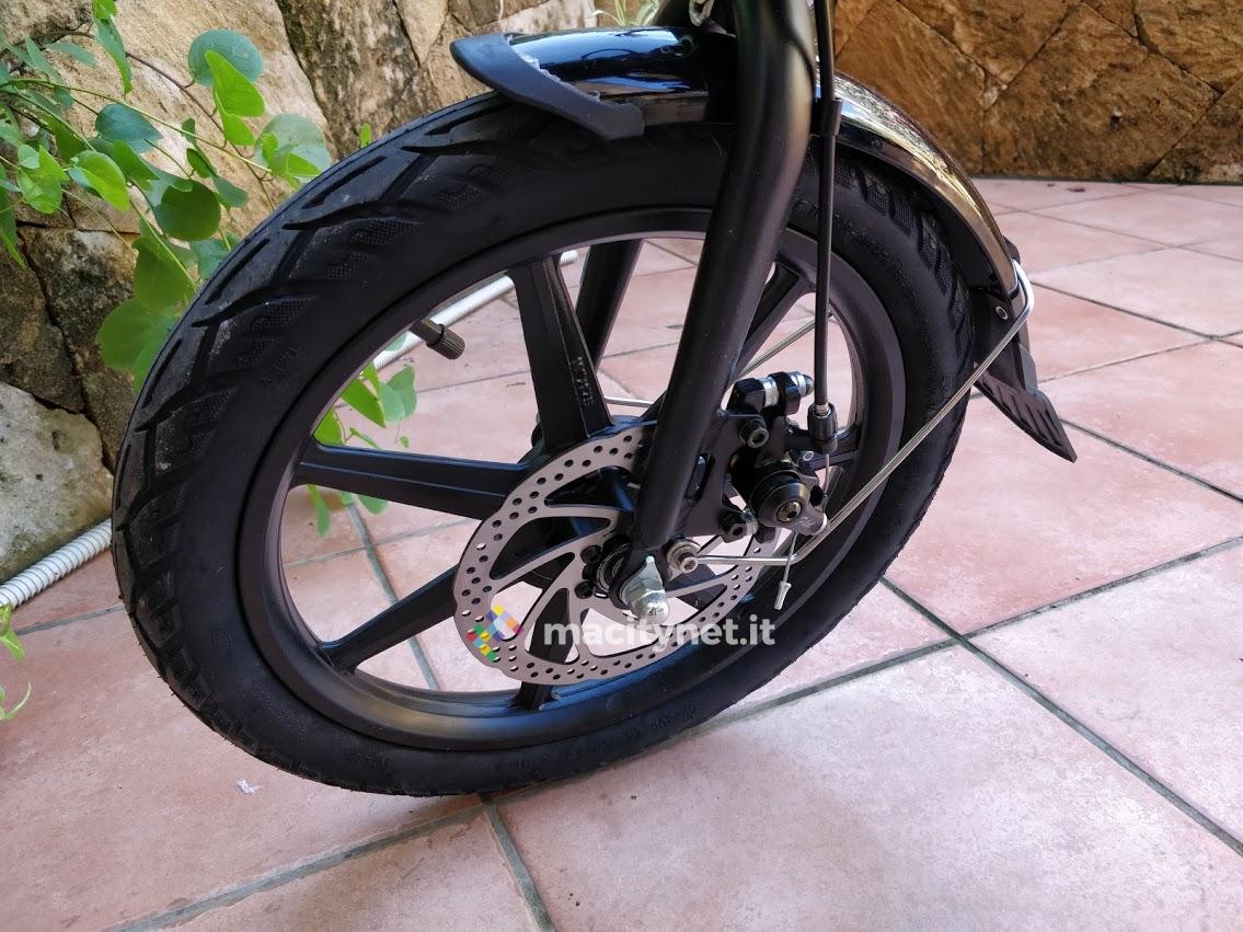 L’estetica della bici elettrica Fiido D2 non sembra essere così diversa dalla precedente. Appena spacchettata, infatti, questa D2 sembra essere la gemella del modello precedente. La prima evidente differenza sta nelle ruote, non più da 14 pollici, bensì da 16 pollici. Le ruote sono, dunque, leggermente più grandi del modello precedente, e questo comporta diversi vantaggi, ma forse anche qualche svantaggio.