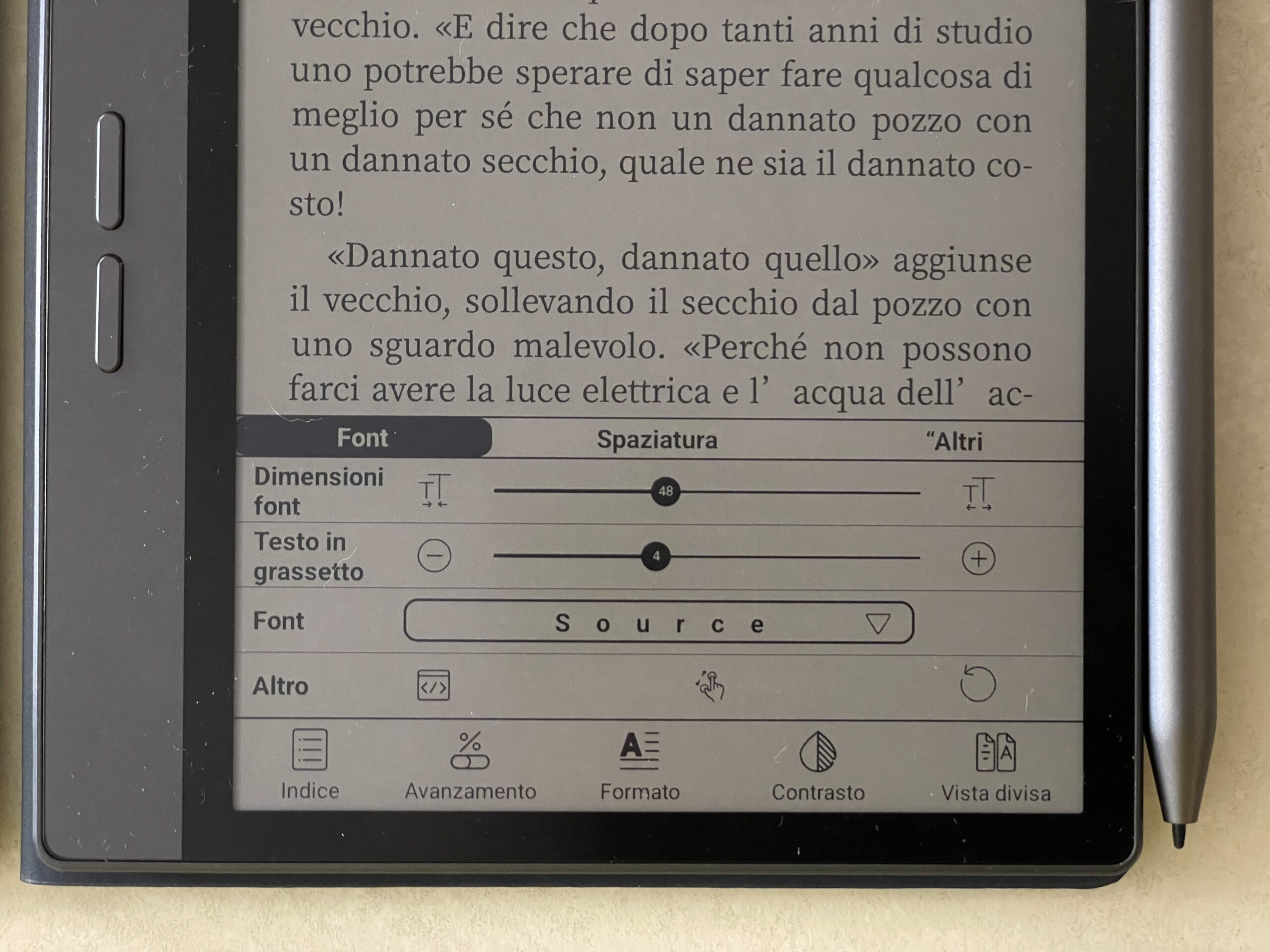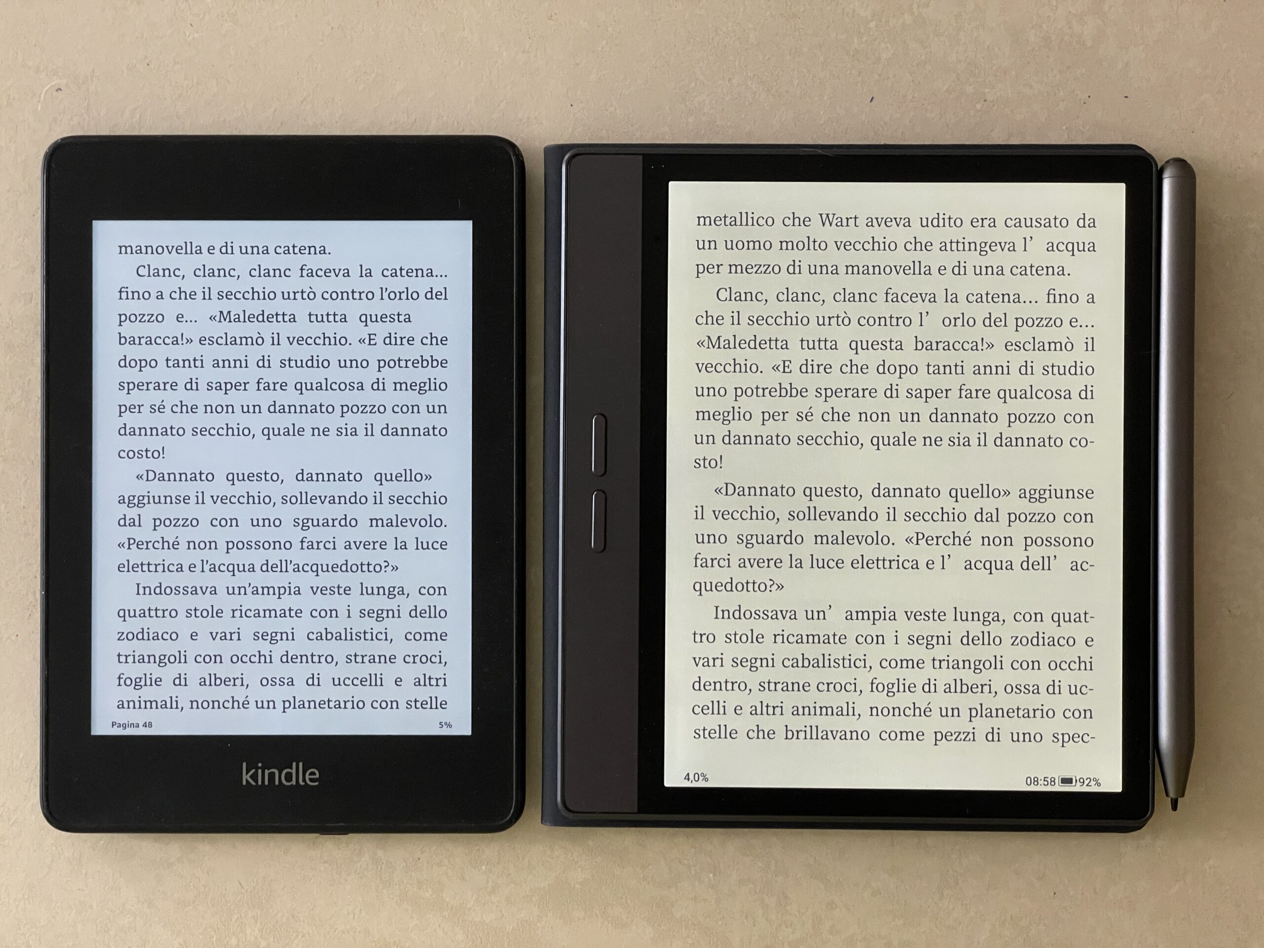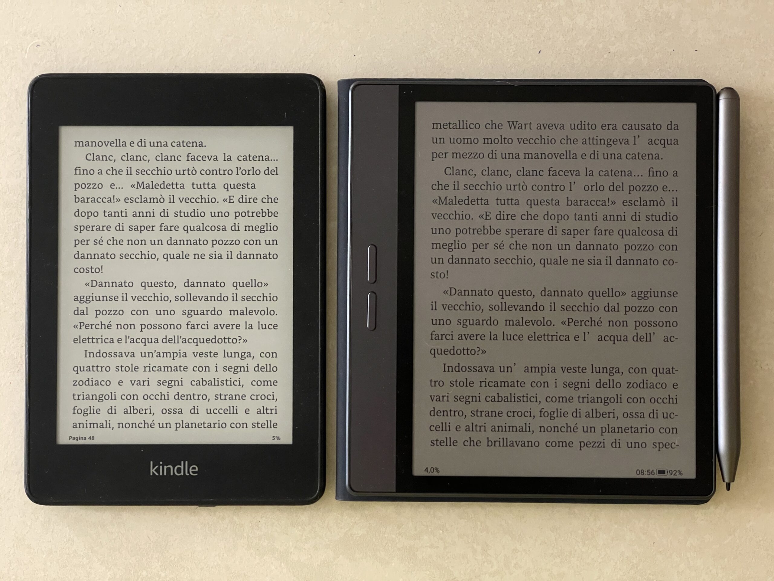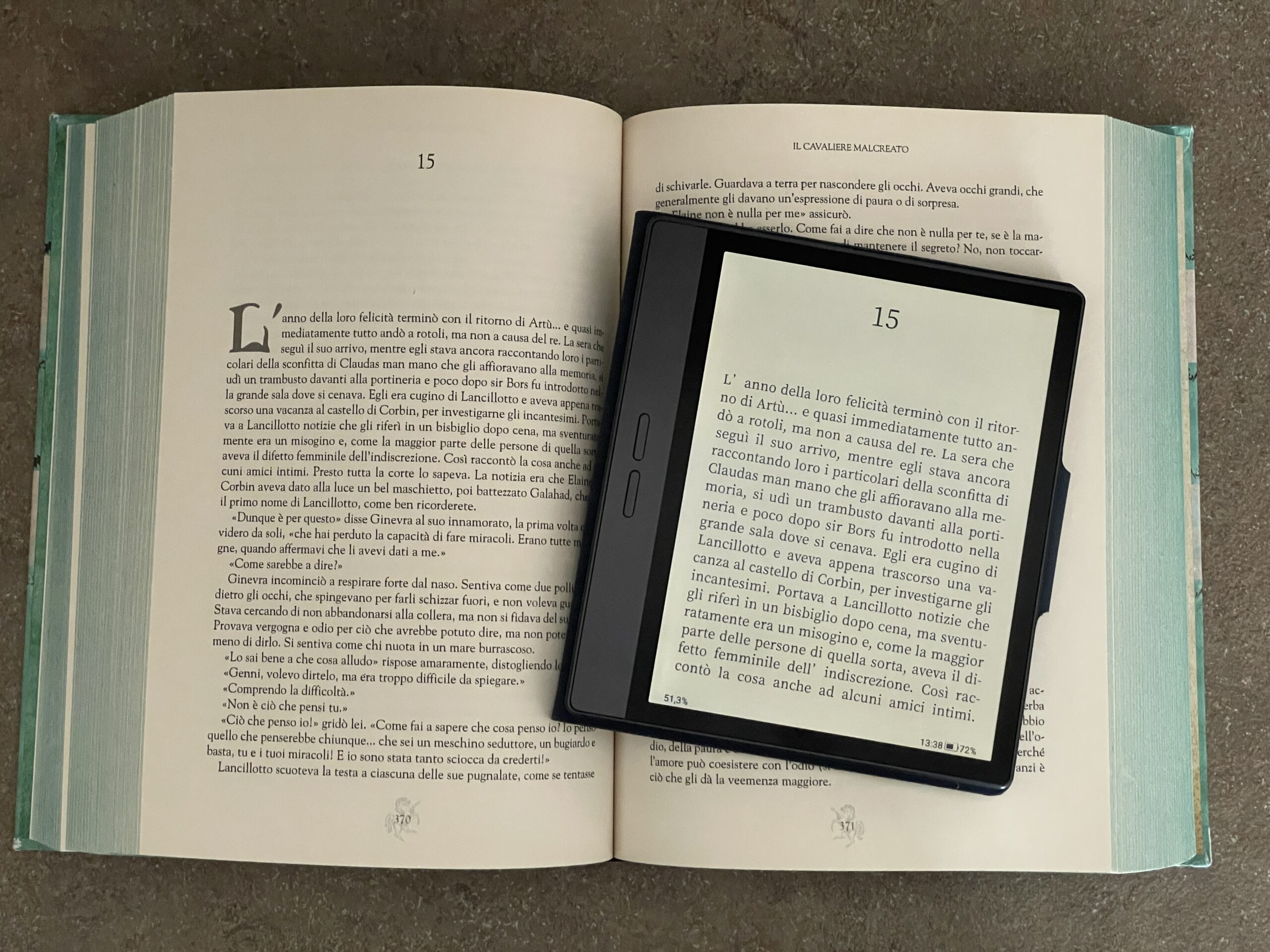 Disattivarla è possibile, ma ha senso soltanto se c’è una forte luce solare, quindi all’aperto o vicino a una finestra. In tutti gli altri contesti purtroppo non se ne può fare a meno perché lo strato aggiuntivo per i pigmenti colorati riduce (e di molto) la lucentezza dello schermo. Il bianco a cui ci hanno abituato i Kindle e gli altri e-reader monocromatici è in realtà un grigio scuro di difficile lettura anche di giorno seduti sul divano.