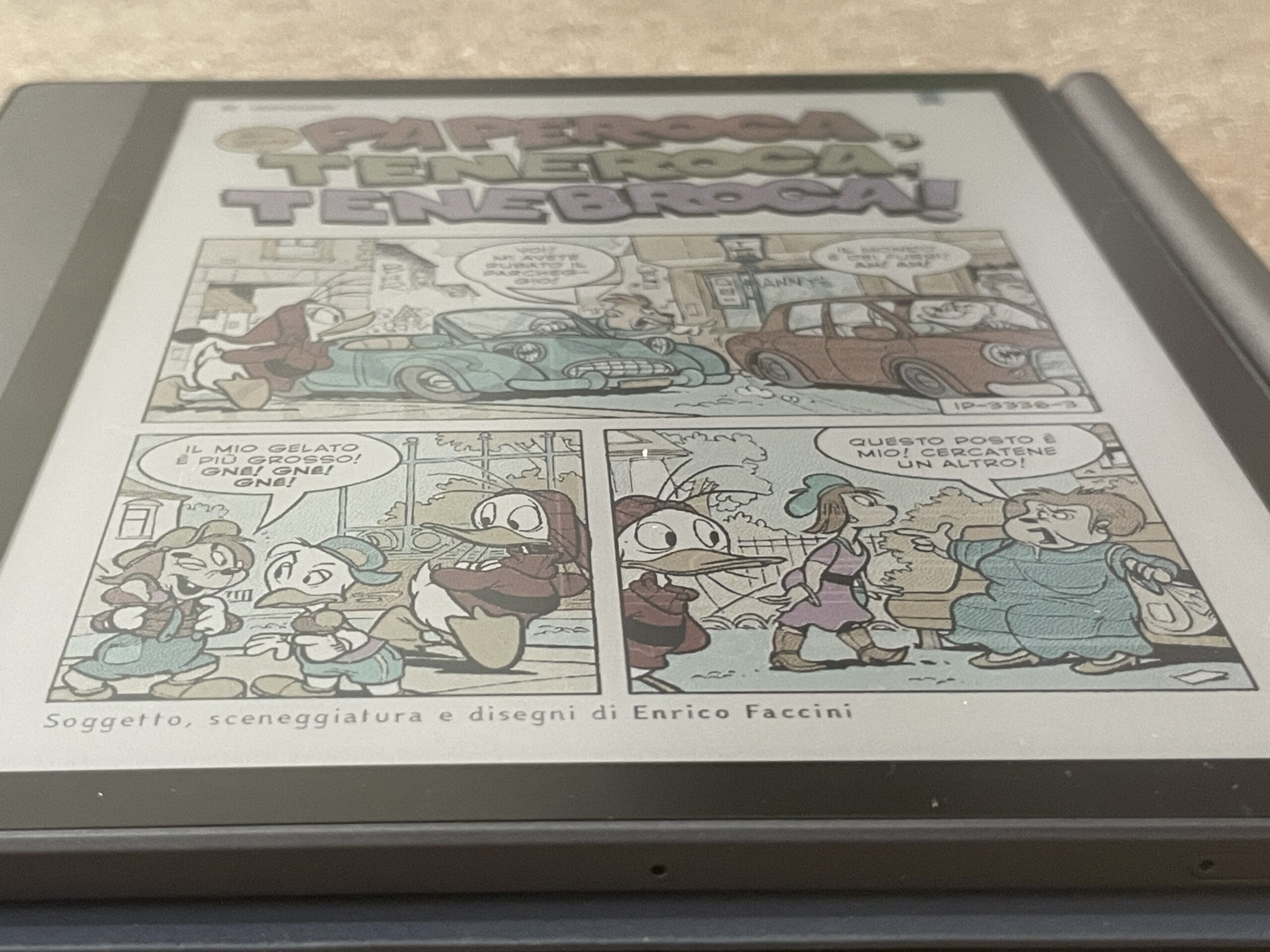Per testi e documenti monocromatici la leggibilità è eccellente, con contrasti netti e zero affaticamento visivo. Per immagini, PDF e fumetti, la resa cromatica è invece accettabile.