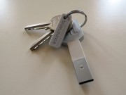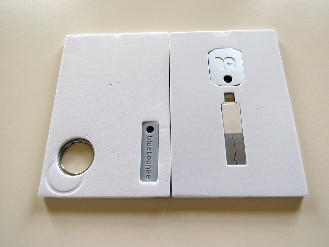 Bluelounge Kii viene fornito in una scatola dove troviamo un anello in acciaio, un targhetta in gomma con la il marchio del produttore, un elemento che resterà attaccato al portachiavi, realizzato in alluminio spazzolato e il cavo, in parte gomma e in parte in metallo. Il cavo è lungo 5 centimetri, l’intero accessorio quando completamente assemblato è lungo sette centimetri, un paio di centimetri in più di una vera chiave. I due pezzi vengono tenuti insieme da un meccanismo ad incastro, regolato da un aggancio a molla che apre e chiude due denti che bloccano il connettore Lightning vero e proprio, ai bordi del quale sono stati ricavati due incavi. Quanto Kii deve essere portato in giro, lo lasceremo completante assemblato e agganciato ad un portachiavi, quando ne avremo bisogno non ci sarà bisogno si staccarlo dal portachiavi, basterà rilasciare il cavetto che useremo per ricaricare un iPad, un iPhone o un iPod touch.