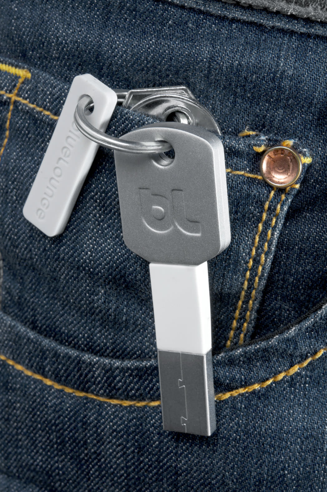 Bluelounge Kii è un cavo Lightning (ma esiste anche la versione con dock 30 pin) a forma di chiave e con le dimensioni di una chiave, e in quanto tale può essere messo, appunto, in un portachiavi. Bluelounge non è la prima azienda al mondo a creare una cavo per ricarica e sincronizzazione con questo fattore di forma, ma è la prima che ha trovato il sistema per spostare un prodotto dal reame del “bella idea”, ma scomodo, in quell’oggetto che davvero si può mettere in tasca assieme delle chiavi per portarselo sempre con sé. Il rebus è stato risolto, usando una testa che resta attaccata al cavo grazie ad un connettore ad incastro, da una parte USB e dall’altra parte Lightning, e ad un cavo corto e flessibile, ma anche robusto.
