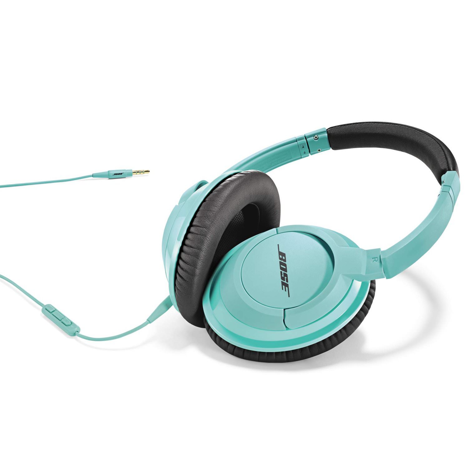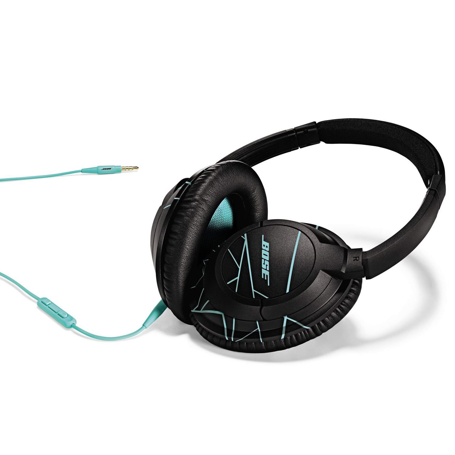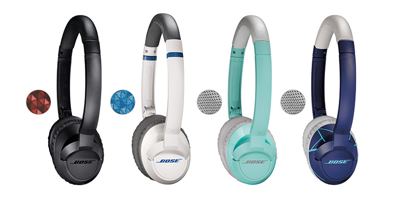 Le SoundTrue sono disponibili in due versioni: around-ear e on-ear e quattro colori (nero, verde, bianco e viola e verde menta). Tecnologicamente, eccezion fatta per il fattore di forma (uno, come dice il nome, si colloca sopra le orecchie e l’altro intorno), si tratta dello stesso prodotto e degli stessi materiali. Dal punto di vista del design siamo un passo avanti, oppure a lato, rispetto alla “seriosità” dei modelli precedenti, ma ancora molto indietro (e questo non è detto sia necessariamente un male) rispetto ad alcuni eccessi della concorrenza. L’aspetto giovanile viene rafforzato dai colori ma anche dai materiali e dagli accostamenti del tono su tono. Nel caso di chi scrive , al verde tenue (“menta” nella dicitura di Bose), si accosta il grigio chiaro. Altri modelli hanno la copertura delle griglie in tessuto a rombi e in forte contrasto. Questo sforzo di ringiovanimento della linea potrebbe non essere perfetto per tutti i gusti. In qualcuno dei modelli i colori danno, almeno a nostro giudizio, una non confortevole impressione di prodotto di fascia economica, il che non dovrebbe essere evitato visto che parliamo di cuffie che costano pure sempre poco meno di 200 euro; per fortuna c’è sempre il classico nero che aggiusta tutto…