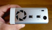 Buffalo DriveStation Mini Thunderbolt è leggero e compatto: la parte principale dello chassis è in alluminio mentre la parte superiore è realizzata in plastica bianca morbida e piacevole al tatto. Nella parte inferiore invece troviamo uno strato in gomma che permette di posizionare ovunque l’unità esterna senza temere di rigare lo chassis in metallo. Le dimensioni (10,2×4,5×15,4 cm) e il peso (540 grammi) contenuti rendono questo dispositivo estremamente portatile, anche se occorre mettere in conto di trasportare con noi anche il piccolo alimentatore esterno, incluso nella confezione, necessario per il funzionamento.