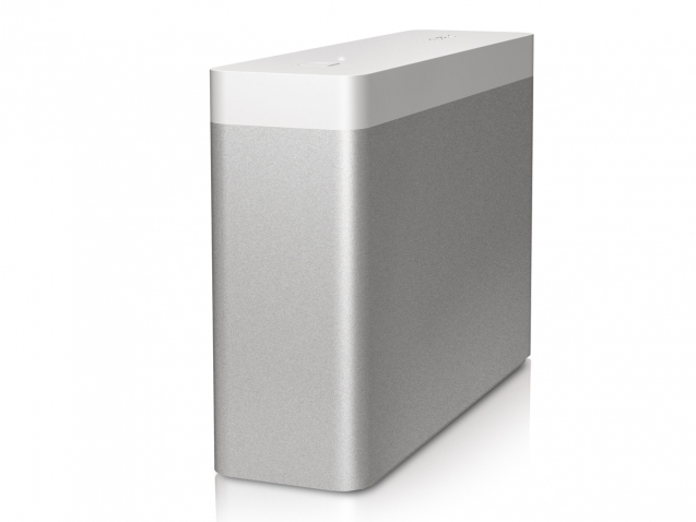 Buffalo DriveStation Mini Thunderbolt è leggero e compatto: la parte principale dello chassis è in alluminio mentre la parte superiore è realizzata in plastica bianca morbida e piacevole al tatto. Nella parte inferiore invece troviamo uno strato in gomma che permette di posizionare ovunque l’unità esterna senza temere di rigare lo chassis in metallo. Le dimensioni (10,2×4,5×15,4 cm) e il peso (540 grammi) contenuti rendono questo dispositivo estremamente portatile, anche se occorre mettere in conto di trasportare con noi anche il piccolo alimentatore esterno, incluso nella confezione, necessario per il funzionamento.