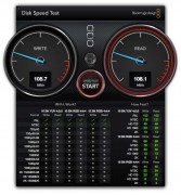 Abbiamo testato l’unità USB con due diversi computer: un MacBook Air 11″ metà 2013 con OS X 10.9.5 e un Mac Mini fine 2012 con OS X 10.10.3. L’utility Blackmagic Disk Speed Test sul MacBook Air ha evidenziato valori di scrittura intorno ai 105 MB/s e 108.5 MB/s in lettura. La semplice copia di una cartella da 8.63GB dal MacBook Air all’unità ha richiesto circa un minuto. Anche i test con QuickBench hanno evidenziato valori simili. Le prove con AJA System Test (per verificare i valori di trasferimento dati in modalità sequenziale) usando un file da 8GB mostrano valori di 108.3MB/s in scrittura e 108.6 MB/s in lettura. I numeri non sono cambiati molto da una macchina all’altra e con i due diversi sistemi operativi (OS X 10.9.x e OS X 10.10.x) e sono in linea con quelli di altre unità simili.