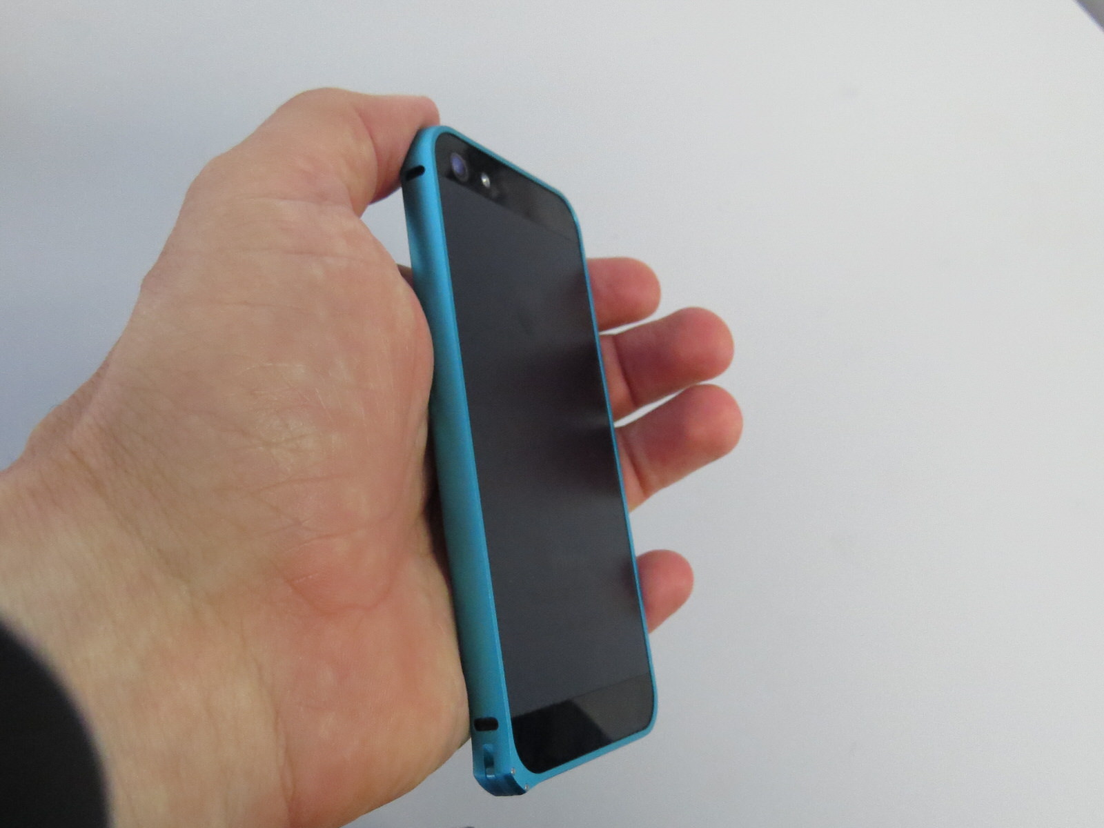 L’aspetto dell’iPhone con i bumper colorati è piacevole. Sarà gradito in particolare a chi ama un tocco di colore nella sua vita quotidiana e non ha una predilezione totale per le tonalità serie di iPhone 5 o quelle neutre di iPhone 5S. In ogni caso è anche possibile acquistare bumper di metallo che si mimetizzano con l’argento, l’oro, il nero o il grigio scuro scelte da Apple. Colore a parte, la sensazione che offre l’alluminio anodizzato è decisamente gradevole; la cornice appare solida e ben rifinita, il bordo arrotondato si adatta molto bene alla mano, anche meglio di quello spigoloso dell’iPhone. Per verificare la resistenza del bumper abbiamo provato a scalfirlo con una punta in metallo, dovendo esercitare una certa forza per avere un vero e proprio graffio; è in ogni caso probabile che montato su un iPhone portato in tasca, a contatto con chiavi e monete, il bumper possa dopo un po’ di tempo rovinarsi, anche se questo avrà comunque evitato problemi simili alla struttura del telefono.