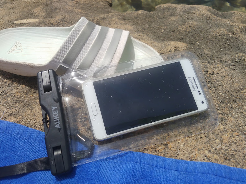 Questo accessori è molto semplice. Se si esclude la parte in plastica in alto che serve a sigillare la bustina, la custodia Aukey in questione è realizzata quasi interamente in PVC. Si tratta di un materiale resistente, che avvolge completamente il dispositivo, calzando quasi come una seconda pelle. E’ possibile immergerlo fino a 10 metri sott’acqua, anche se il consiglio è sempre quello di non sfidare la sorte… Durante le nostre prove abbiano provato ad adagiare la bustina contenente lo smartphone a filo d’acqua, per pochissimi istanti, senza riscontrare alcun problema al terminal, ma anche in considerazione del bassissimo costo, è sempre meglio pensare che siamo di fronte ad un prodotto che non è garantito come custodie a prova di acqua e polvere.