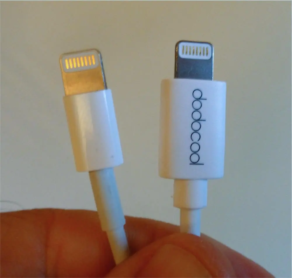 E a proposito di ricarica e sincronizza, i cavi clonati possono avere problemi seri in queste due funzioni specifiche. Un buon numero infatti alimenta il dispositivo, ma non permette la sincronizzazione, questo per effetto del chip di protezione proprietario intorno a cui Apple ha costruito il connettore. Il reverse engineering della componente, attuato non a regola d’arte, è la causa di questo problema. Il cavo di Dodocool, che appartiene al programma MFI, non manifesta alcun tentennamento in nessuna delle due funzioni base di un cavo Lightning: carica e sincronizza e lo fa in tutte le situazioni. In particolare ricarica sia collegato ad un alimentatore che ad una porta USB. Un secondo problema che il cavo Dodocool non ha e che invece diversi cavi clonati hanno, è il messaggio di errore di cavo non certificato e quindi non in grado di funzionare correttamente con iPhone. L’adesione di Dodocool al programma MFI elimina anche il rischio che un cavo che funziona oggi, possa non funzionare domani.