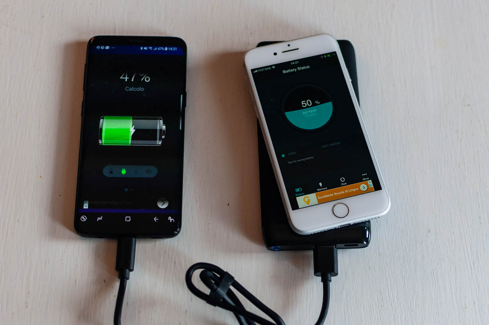 Il terzo modo è dato dalla contemporaneità dei due: Choetech Wireless PowerBank è infatti in grado di caricare contemporaneamente uno smartphone in wireless e uno via cavo (le prove sul campo sono state fatte in questo modo): per i tempi in merito rimandiamo a quando dichiarato sopra, basti sapere che la batteria, prima carica quasi al 100%, dopo aver caricato completamente un Galaxy S9 e un iPhone 8 mostrava ancora un LED di carica blu (che indica una carica variabile dallo 0 al 25%.