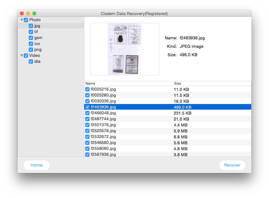 Il problema (comune a tutte le utility di questo tipo) è che i potenziali file recuperabili sono elencati con nomi generici e non è facile capire se quello che stiamo recuperando è effettivamente quello che stavamo cercando o no. Questa utility dovrebbe ad ogni modo consentire di visualizzare le anteprime dei vari file prima del recupero vero e proprio ma sulla macchina da noi usata per le prove (un MacBook Air 11″ metà 2013 con OS X 10.10.3 Yosemite) non sempre è stato possibile visualizzare in anteprima i documenti senza effettivamente recuperarli (abbiamo provato con file .DOC, PDF, file di testo).