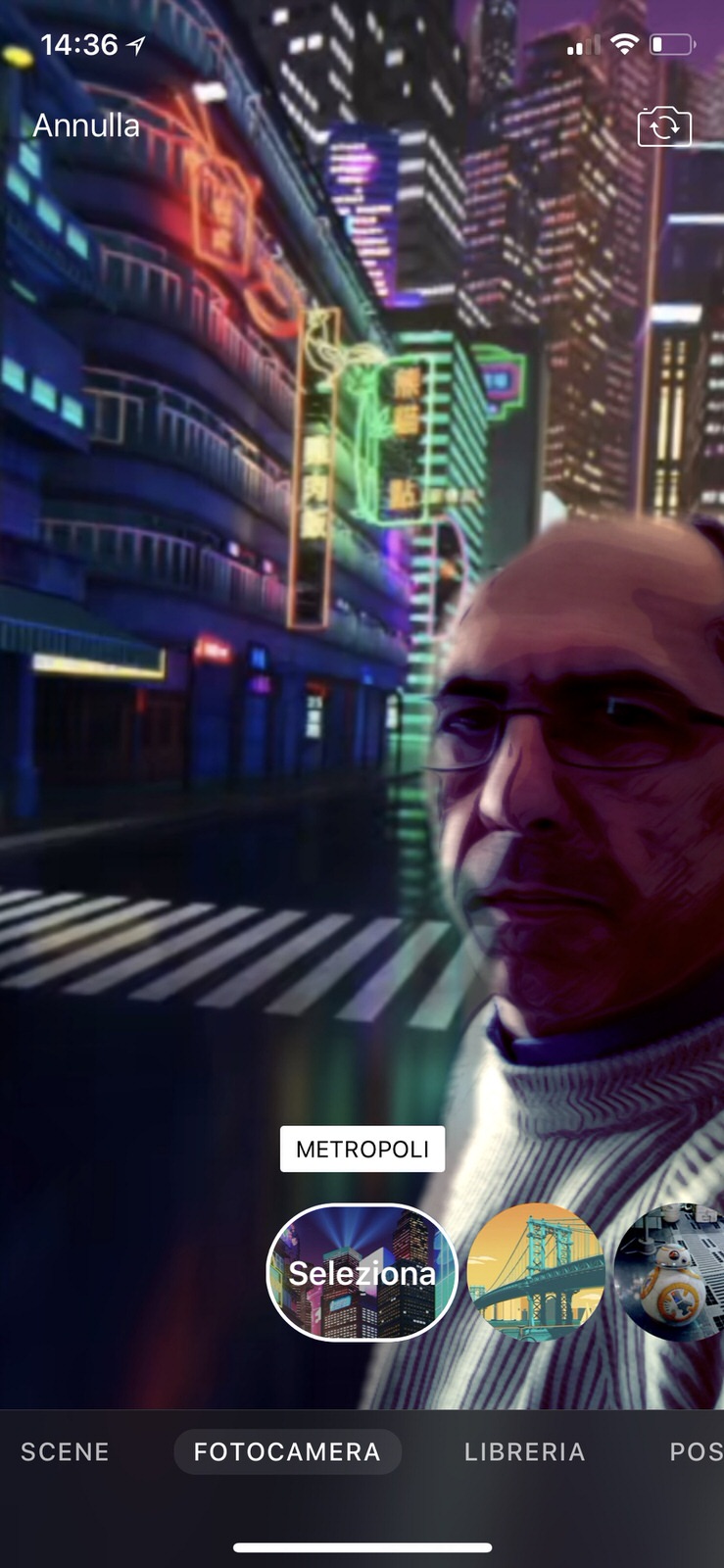 Le scene sono applicate “live”. In pratica i filtri agiscono in tempo reale e in maniera molto credibile. Ovviamente si tratta di effetti molto particolari che potrebbero non essere interessanti per tutti, ma anche chi ha qualche dubbio sul design e sulla effettiva utilità di una simile funzione, non potrà che restare stupido dalla fluidità e dalla reattività di iPhone nel gestire un sistema tanto complesso. Da notare che, infatti, le scene live sono a 360 gradi: in pratica possiamo muoverci e far vedere quel che si vede intorno a noi, dietro di noi e sopra di noi.
