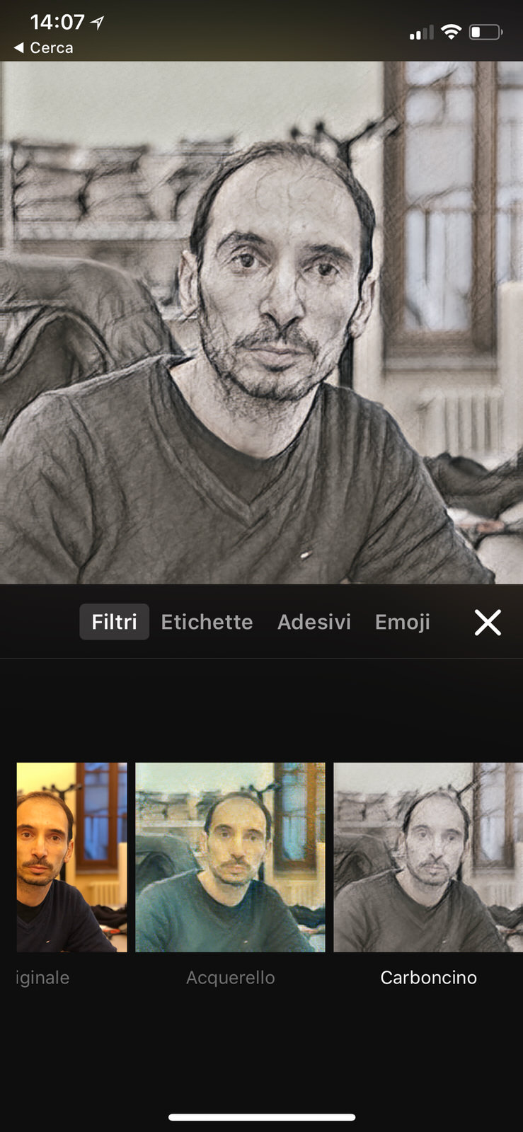 Nuovi e interessanti anche i filtri live. Come altre applicazioni di questo genere, Clips 2 permette di applicare effetti in tempo reale ad un filmato o una foto. In pratica vedremo uno dei sedici filtri (alcuni ricordano, in forma meno elaborata, quelli disponibili su Prisma) disponibili, da carboncino ad acquerello, da metallico ad inchiostro, sovrapporsi alla ripresa da vivo. Un effetto simile a quello degli sfondi a 360° di cui parlavamo sopra, ma che qui è disopinibile anche dalla fotocamera posteriore del telefono, Da questo si apprende, però, questa funzione è possibile solo con iPhone 7 o superiori, probabilmente per questioni collegate alle richieste del processore.