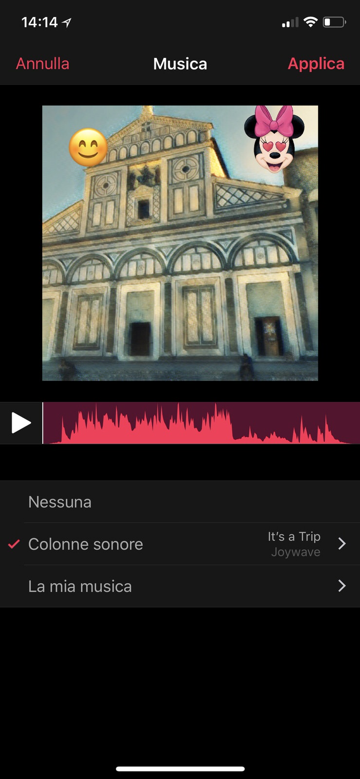 - Scegliamo una colonna sonora tra quelle disponibili (che si adattano automaticamente alla lunghezza della scena)