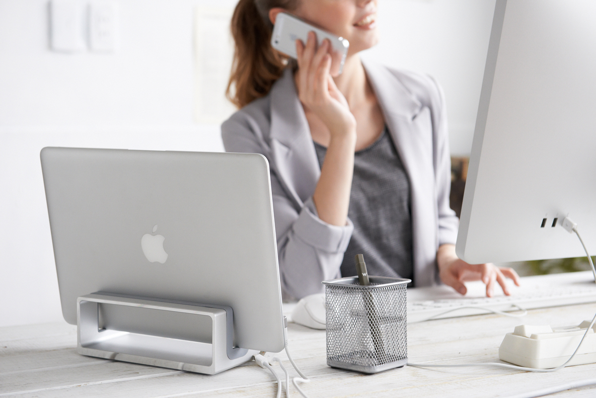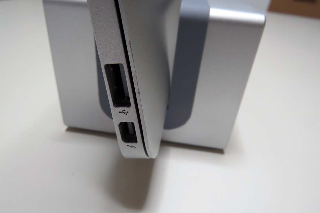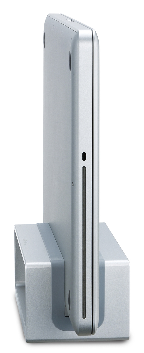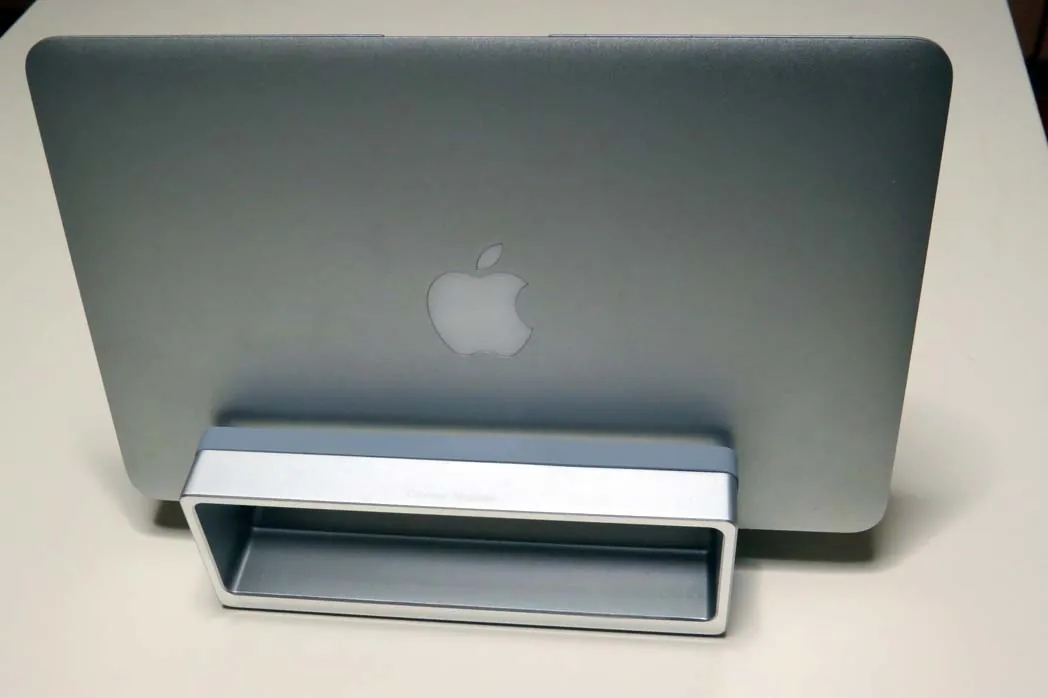 Abbiamo usato il Clutch con un MacBook Air da 11 pollici e dobbiamo dire che il nostro Mac era stabilissimo. D’altra parte è difficile pensare altrimenti visto che il peso del Clucth è sopra il mezzo kg, più della metà di quanto non pesa lo stesso MacBook Air. La base è larga a sufficienza per impedire il ribaltamento anche di dispositivi molto più pesanti e molto più alti. Il Mac una volta posizionato nel Clutch può essere usato collegato ad un monitor, liberando spazio sulla scrivania, rendendolo simile ad un desktop.
